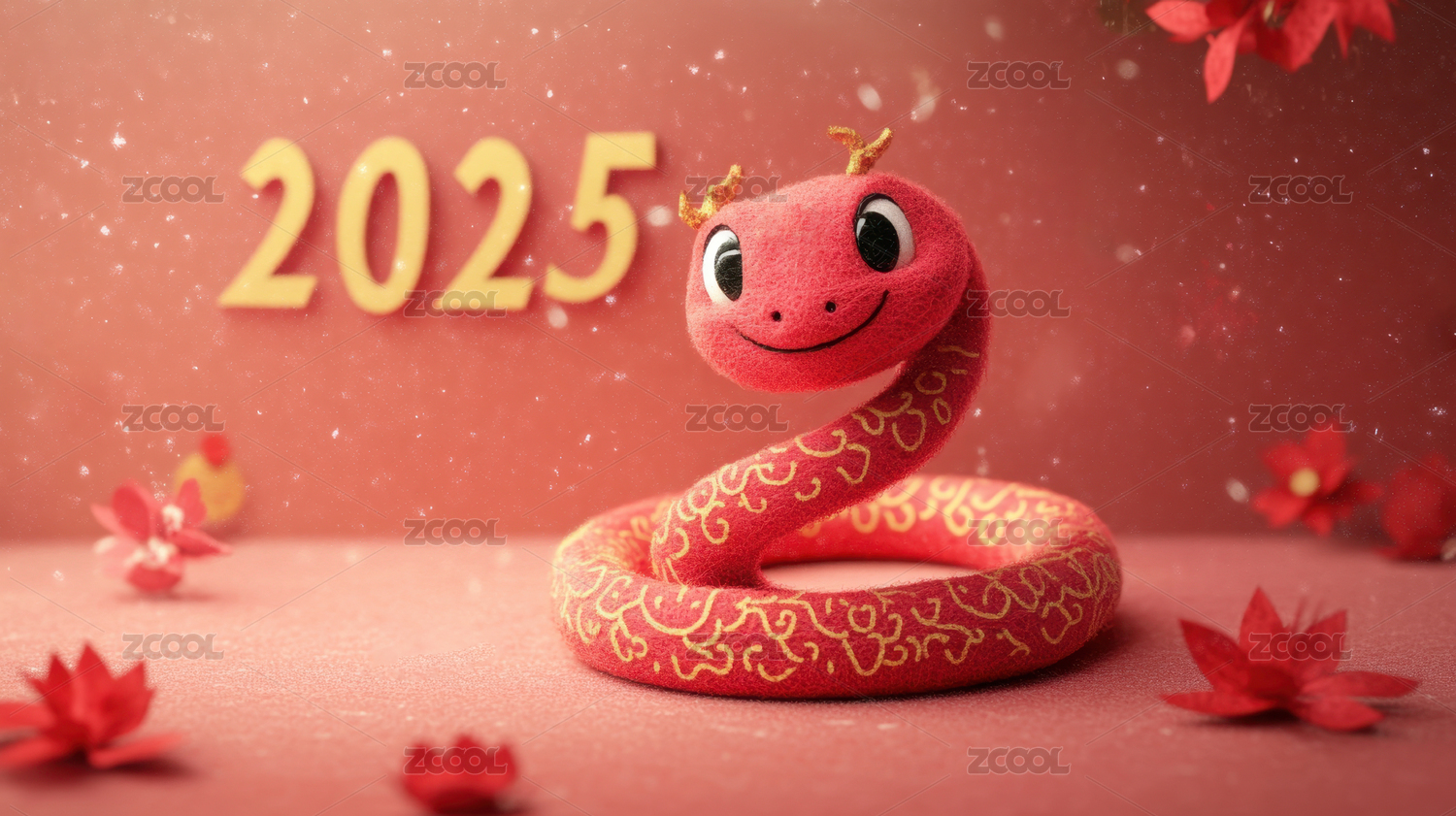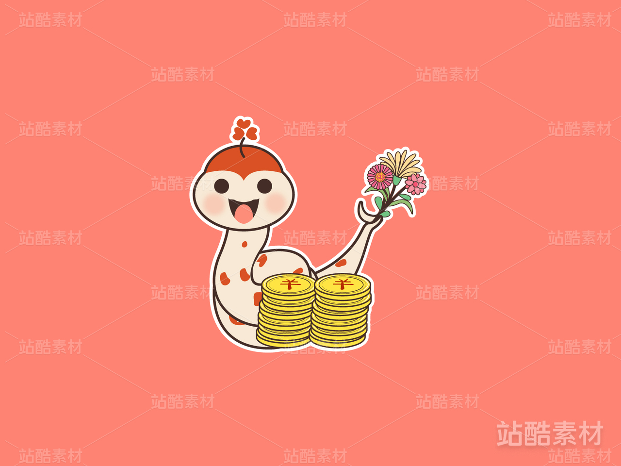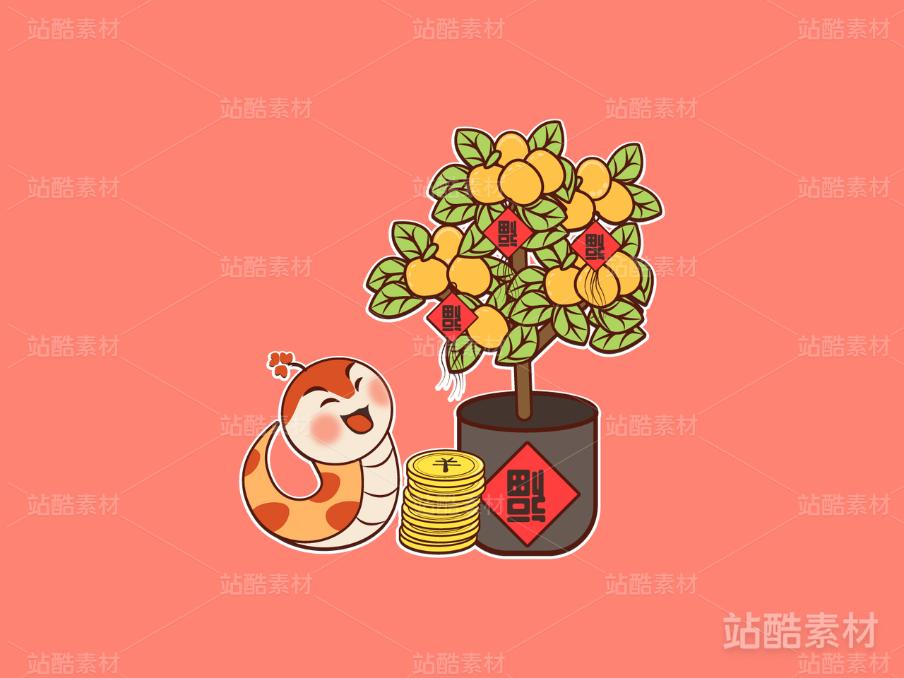十二生肖蛇年卡通可爱蛇穿行于梅花插画