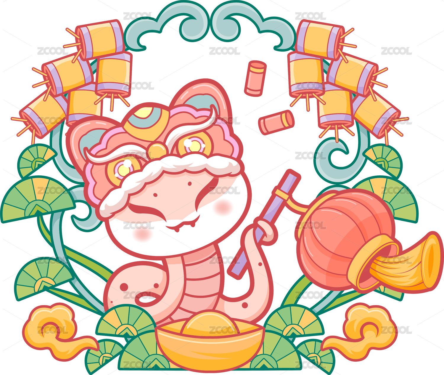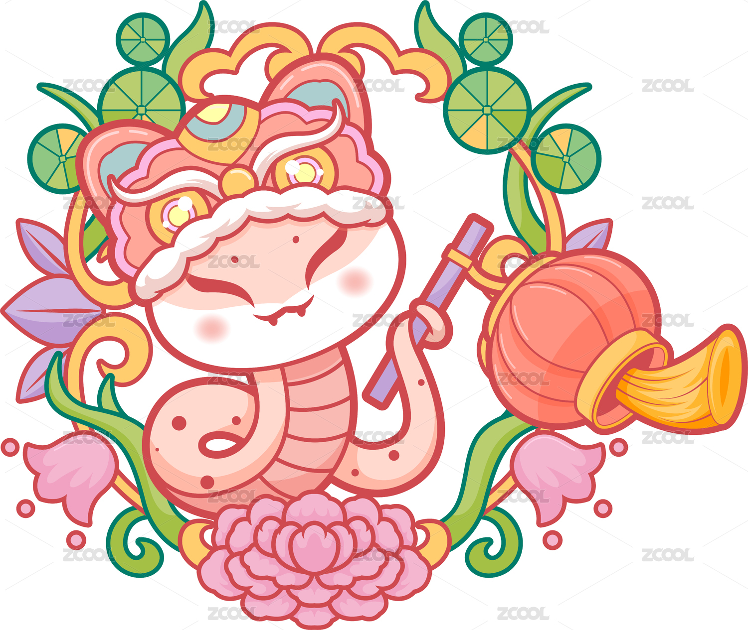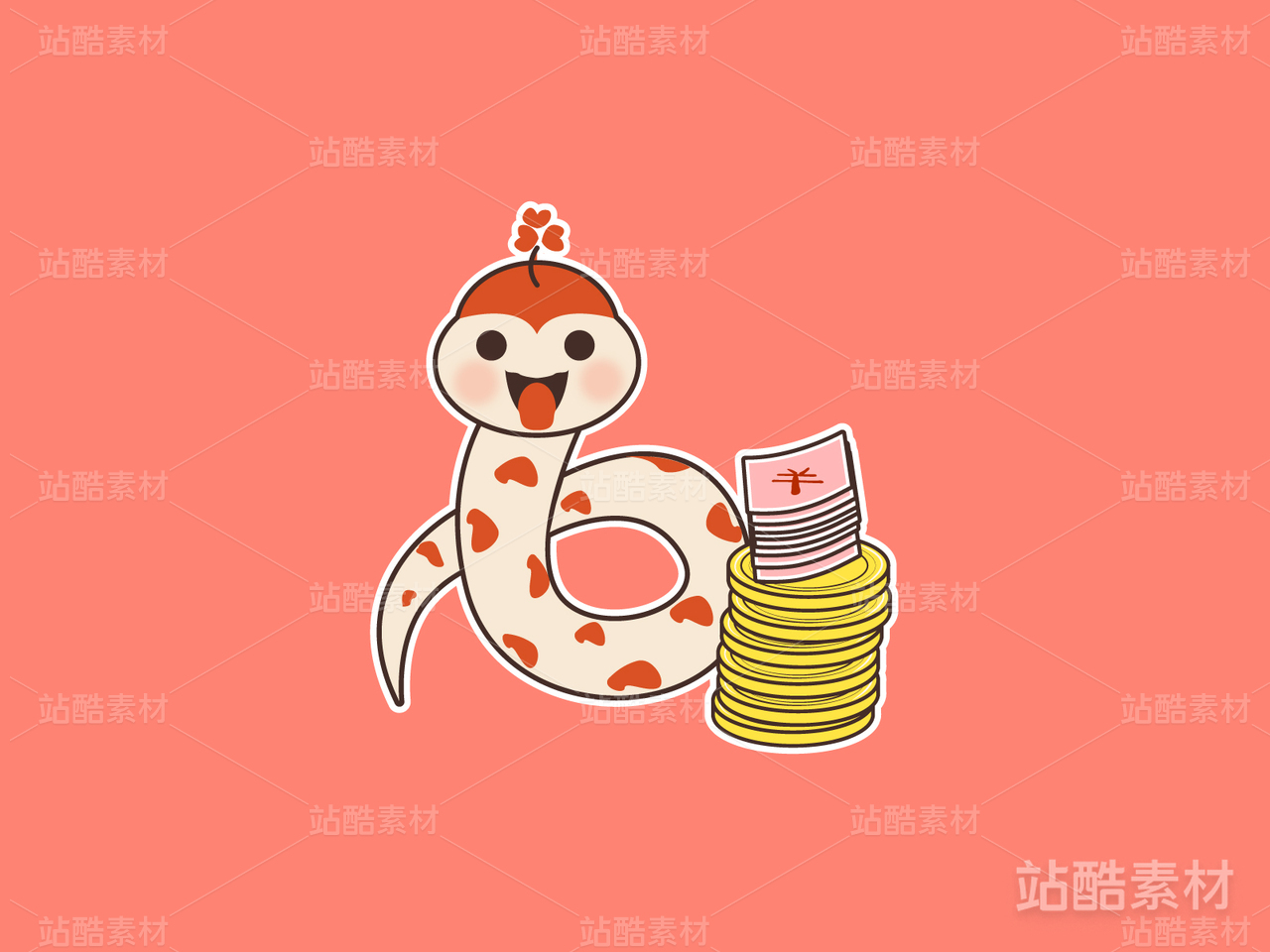 蛇年生肖蛇五彩可爱蛇卡通矢量图可编辑