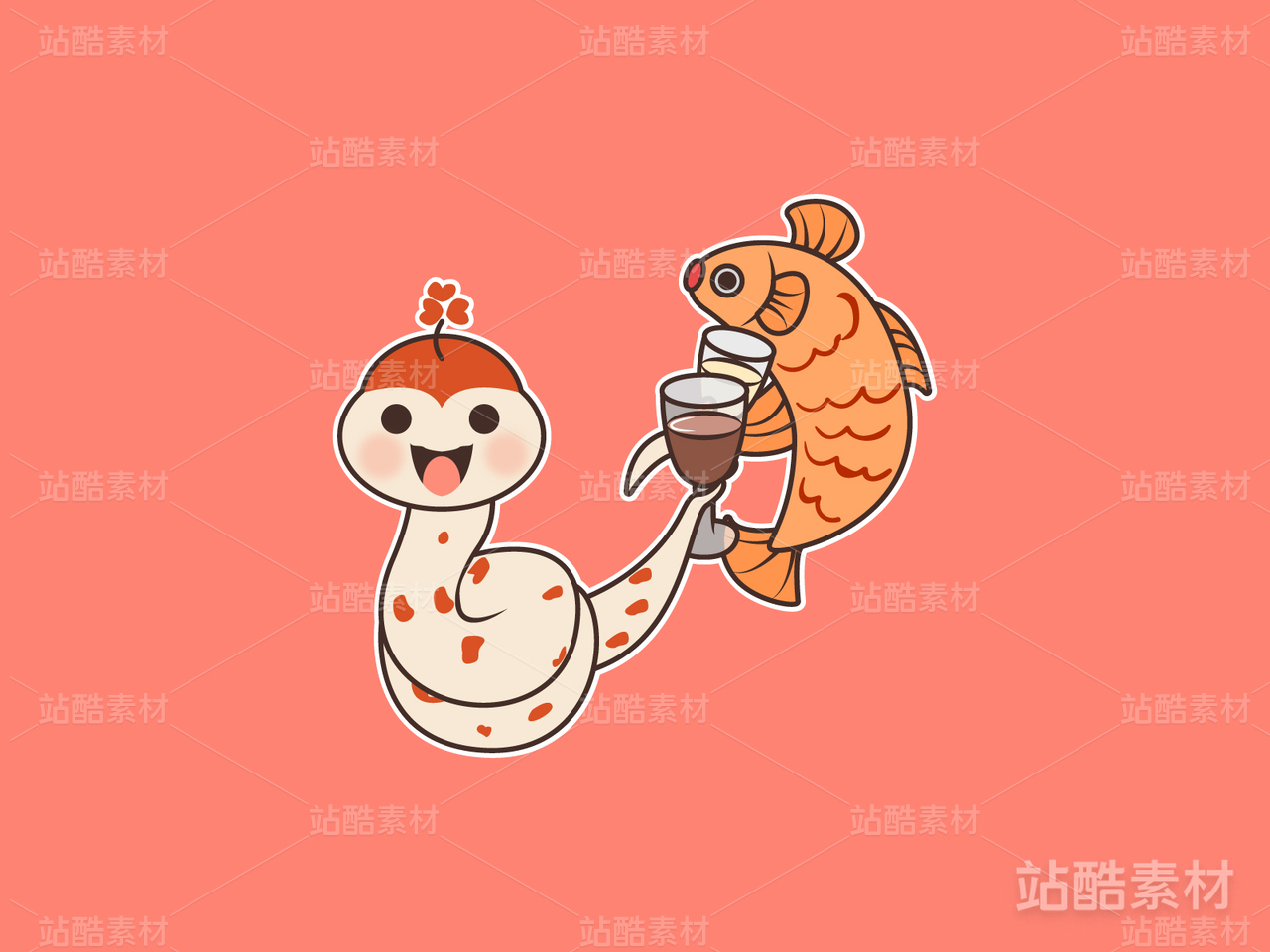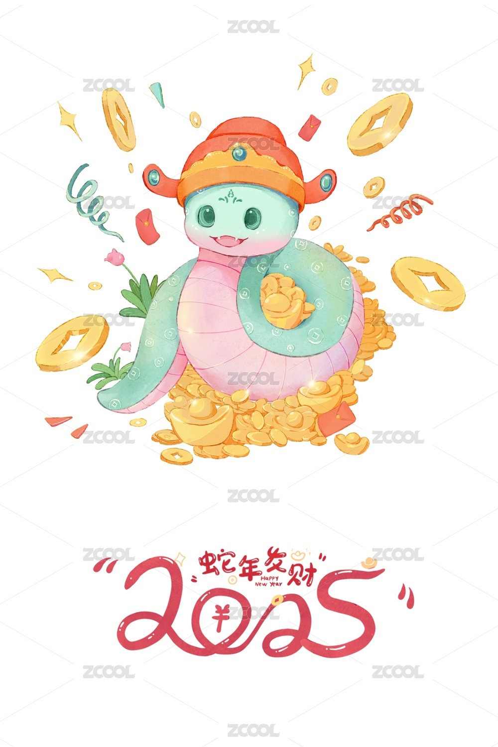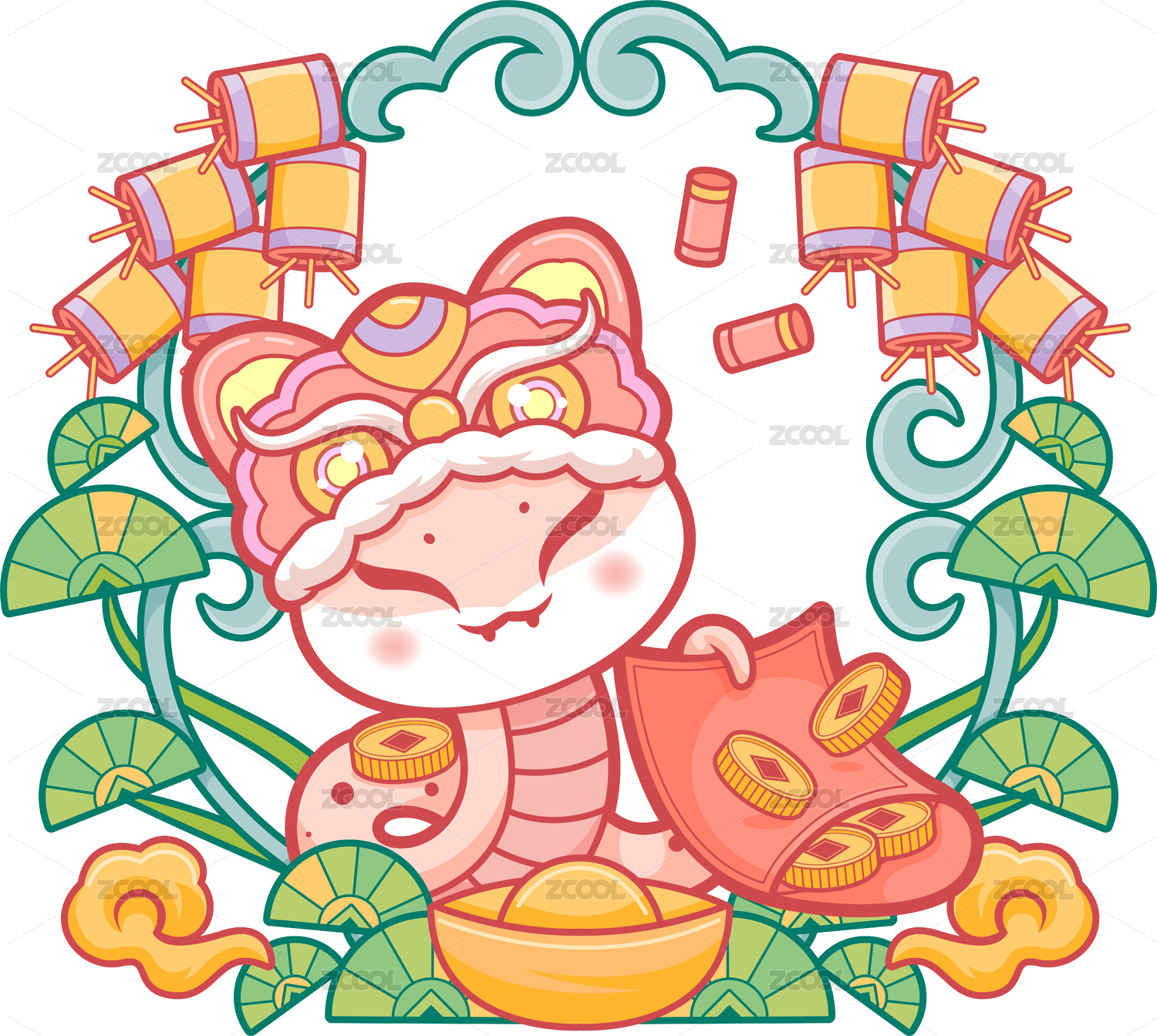 蛇年生肖蛇五彩可爱蛇卡通矢量图可编辑