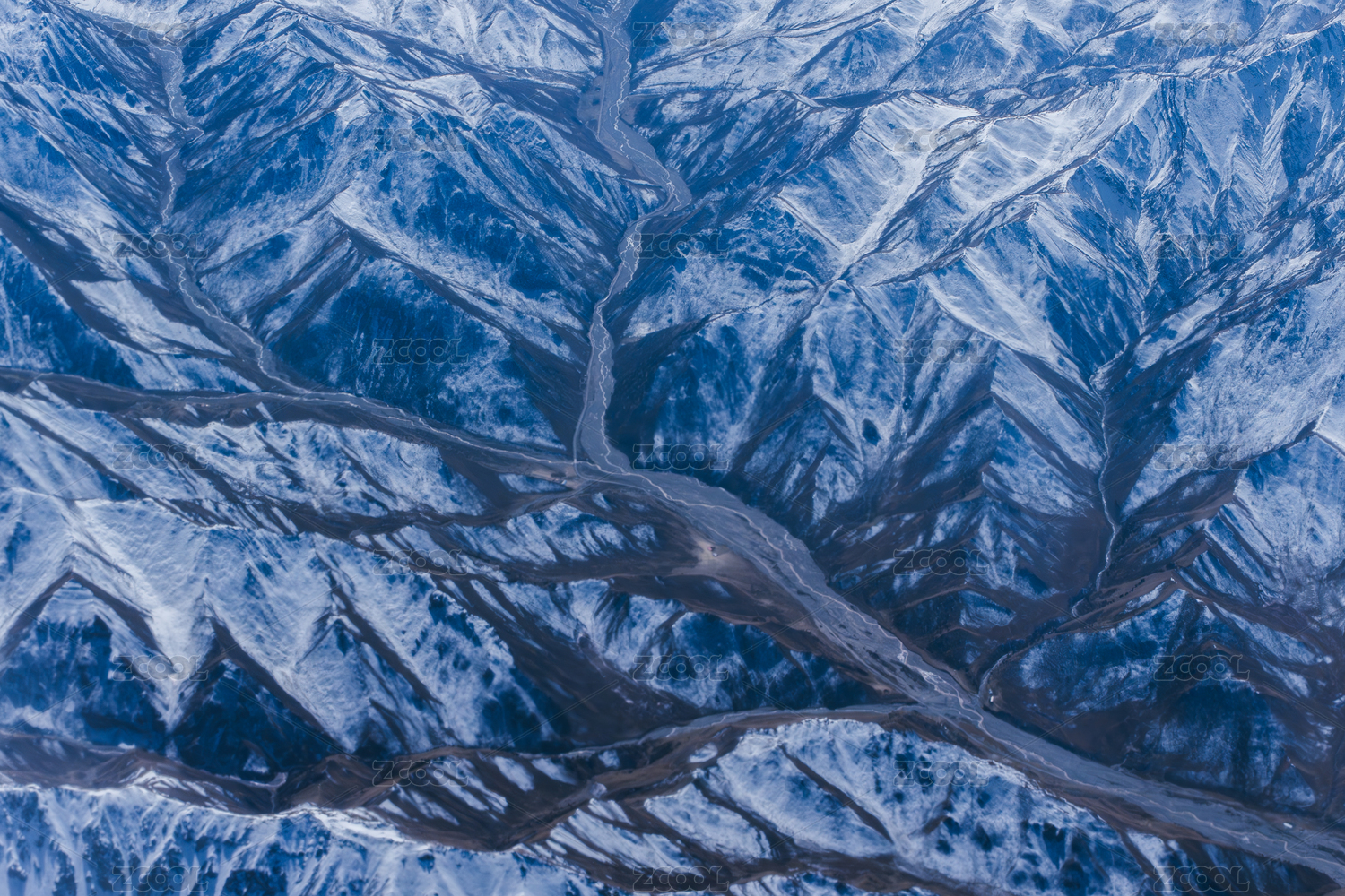 航拍祁连山脉中穿行的河流