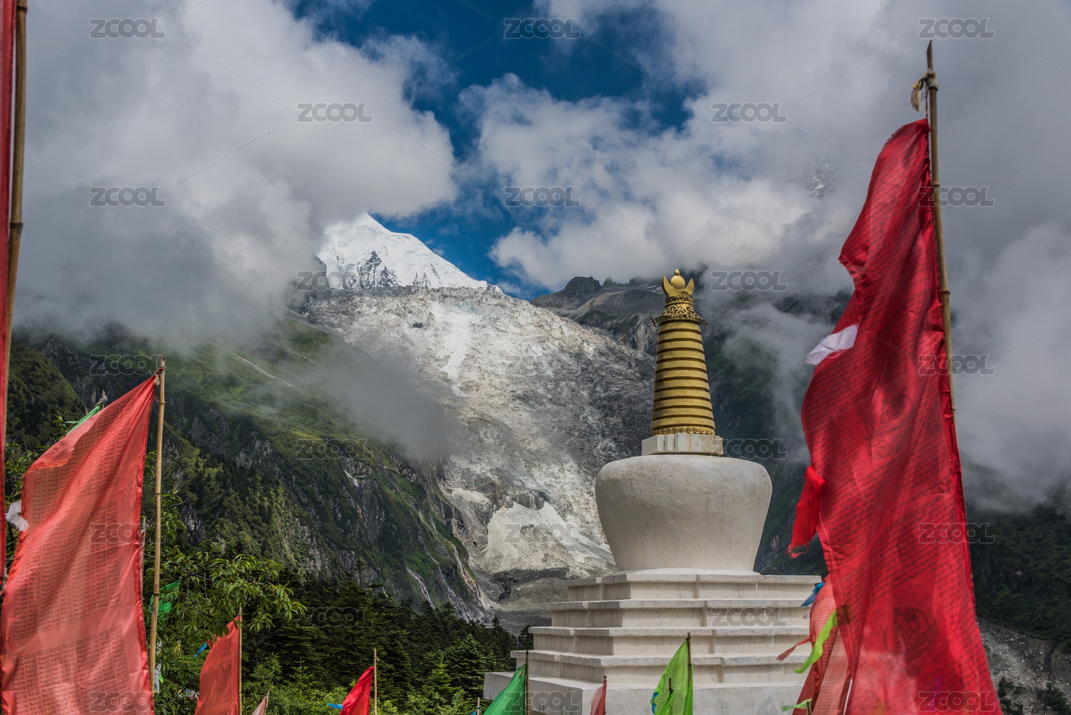 中国西藏当雄廓琼岗日冰川的雪山和冰挂