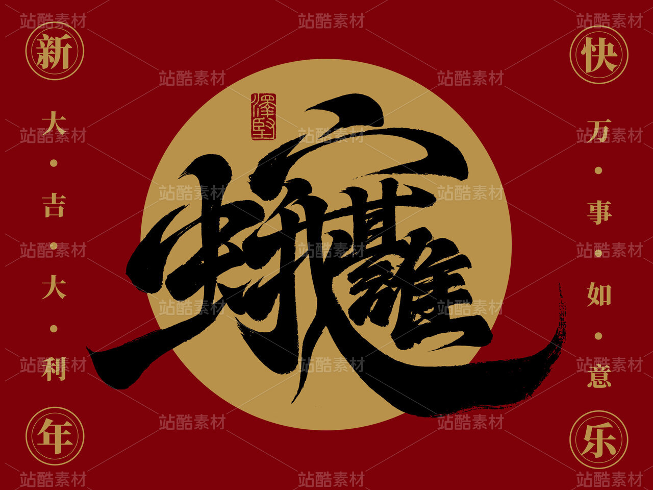 蛇年祝福/蛇我其谁/新年祝福/合体字/手写祝福/毛笔字