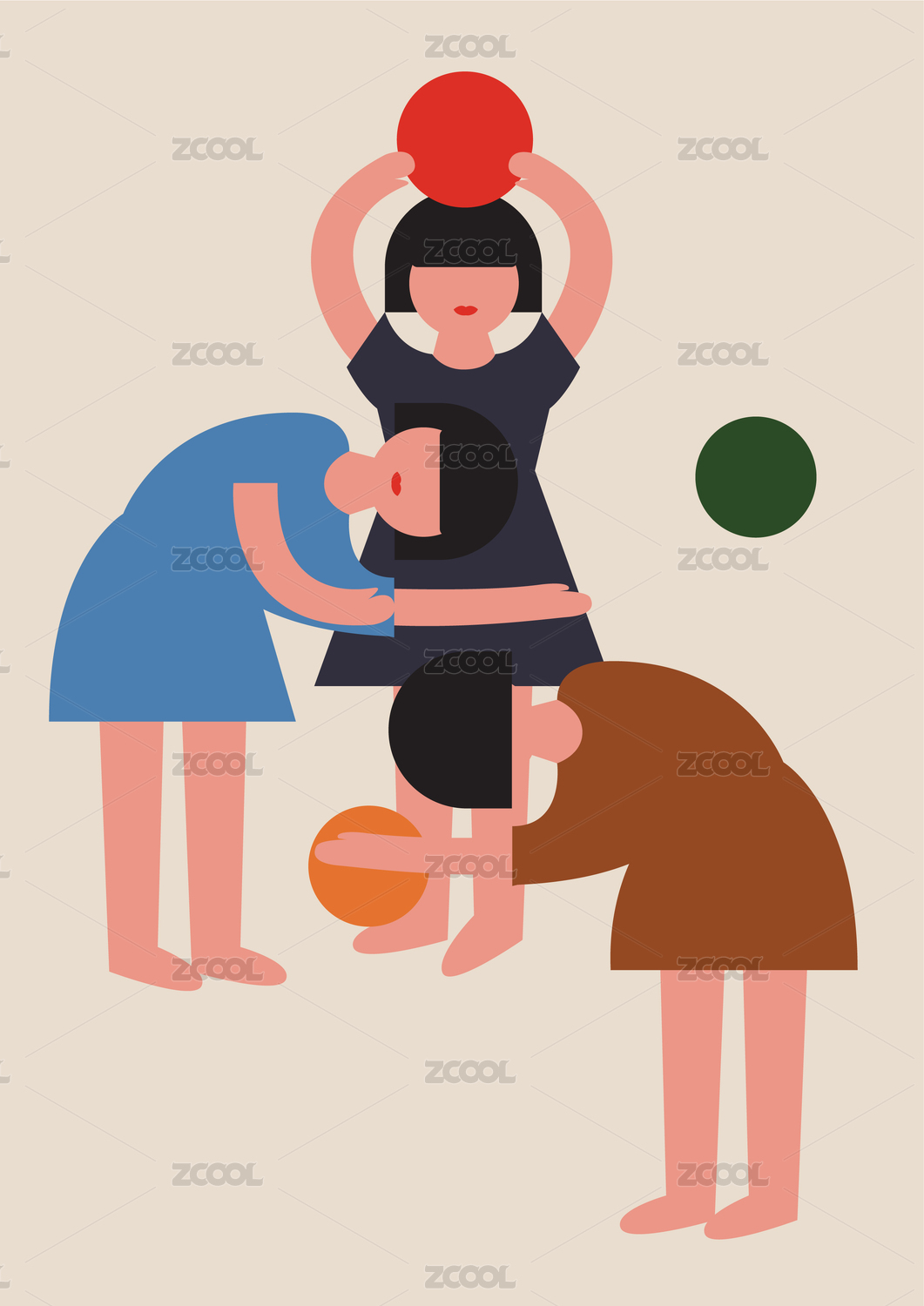 放在彩色背景里的礼盒和爱心图形,极简风格