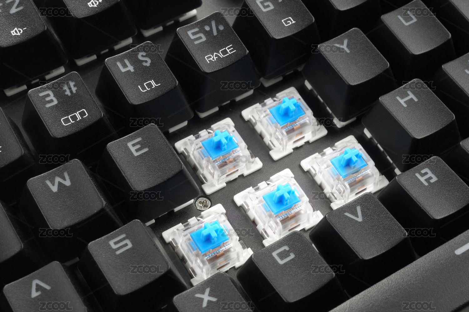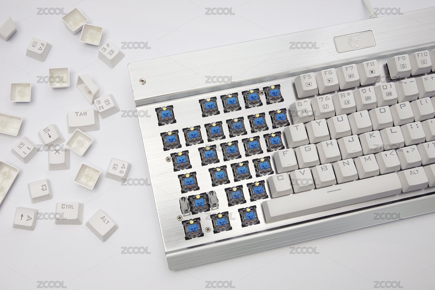 桌面上多个机械键盘的键帽灯闪烁着亮光