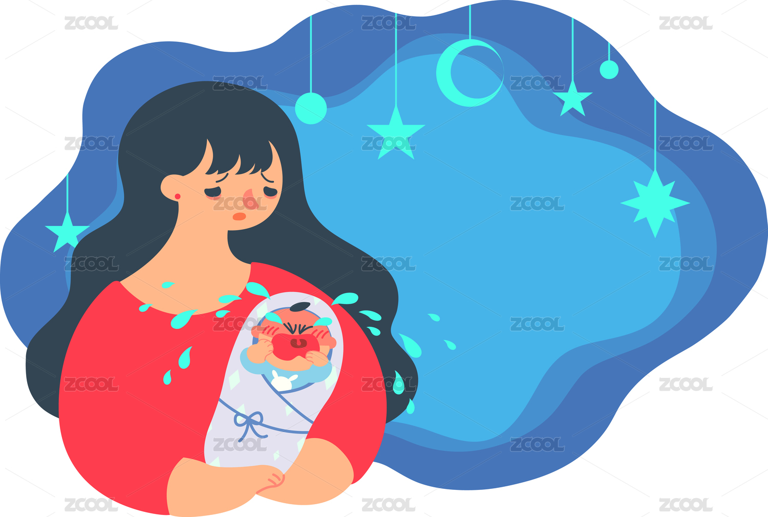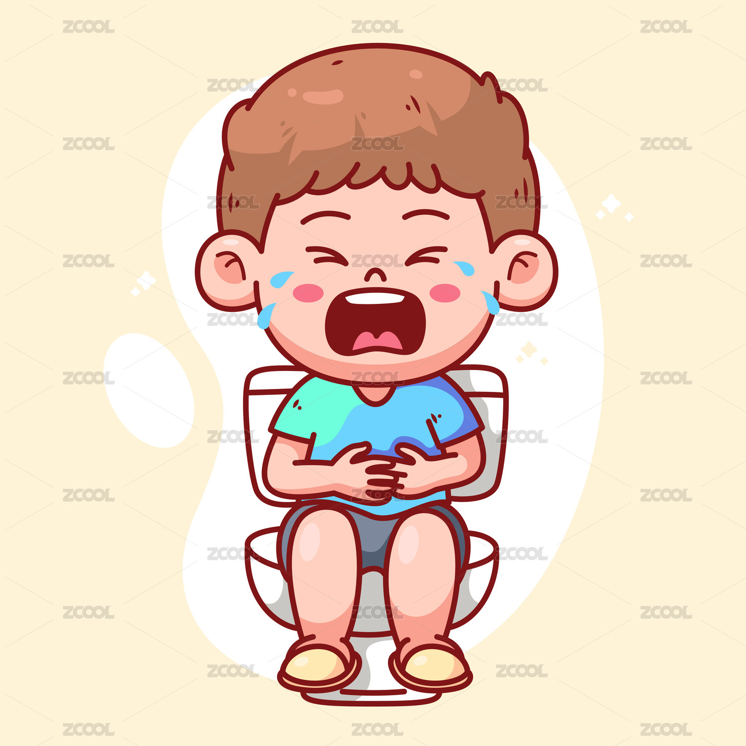 小孩坐在马桶上抱着肚子哭泣矢量插画