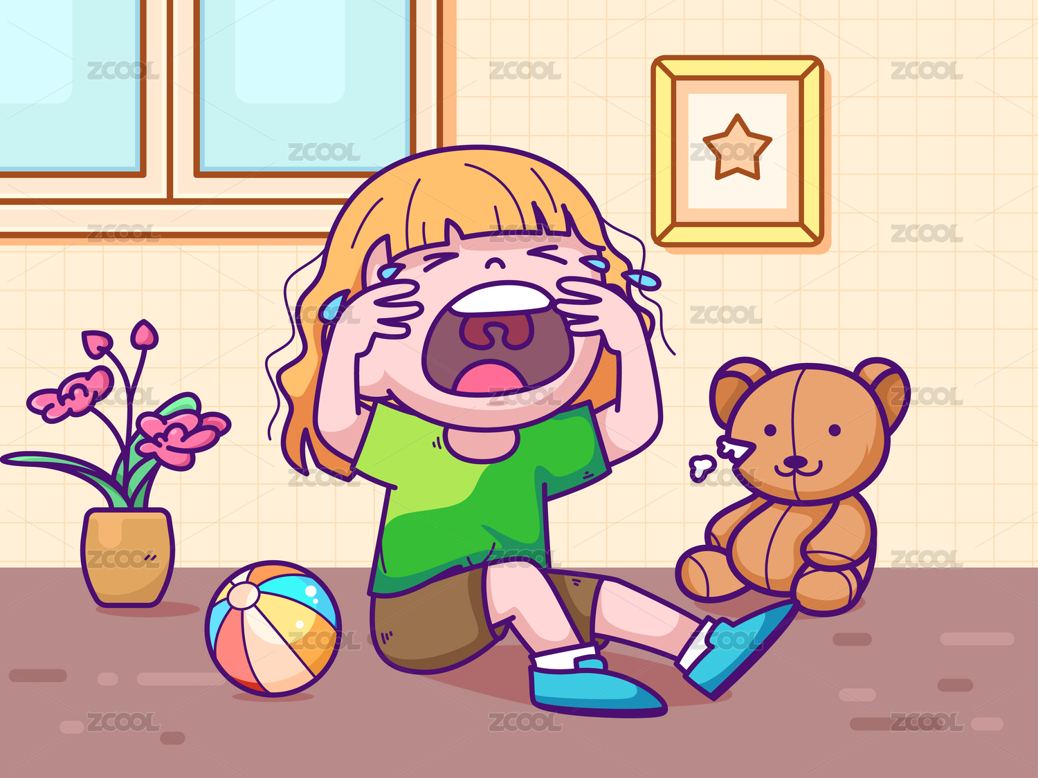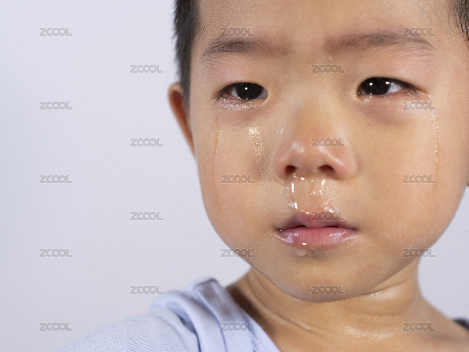 亚洲中国人小朋友小孩悲伤哭泣流鼻涕大哭