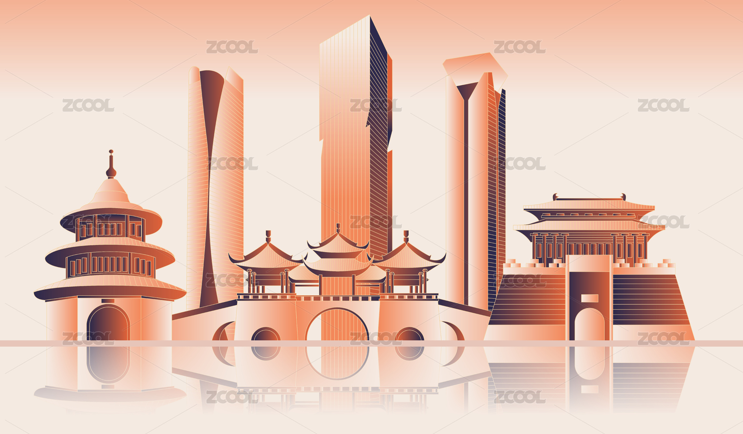 扬州城市天际线金融插画