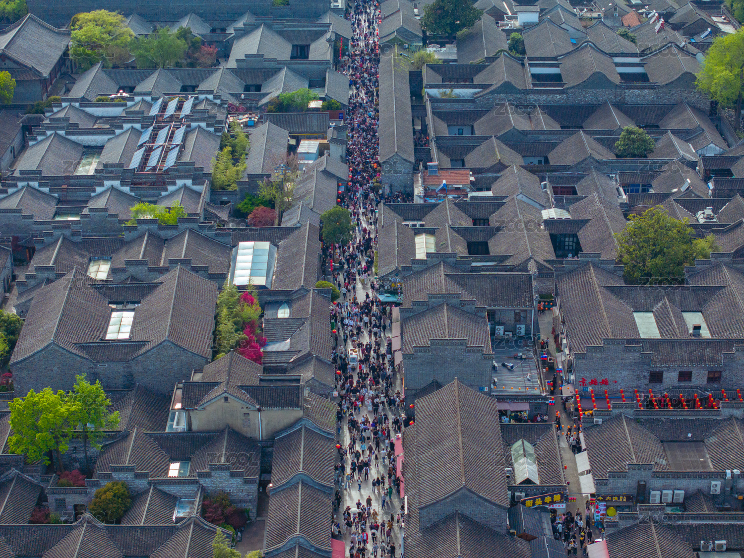 航拍扬州东关街全景节假日人山人海
