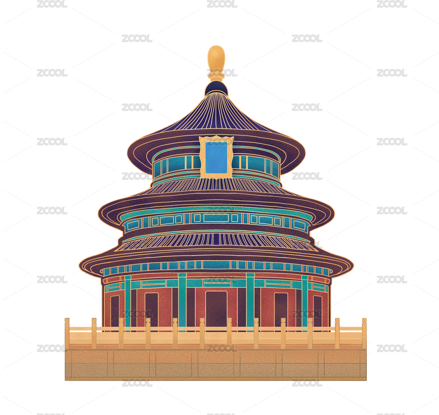 北京天坛祈年殿中国风插画设计素材