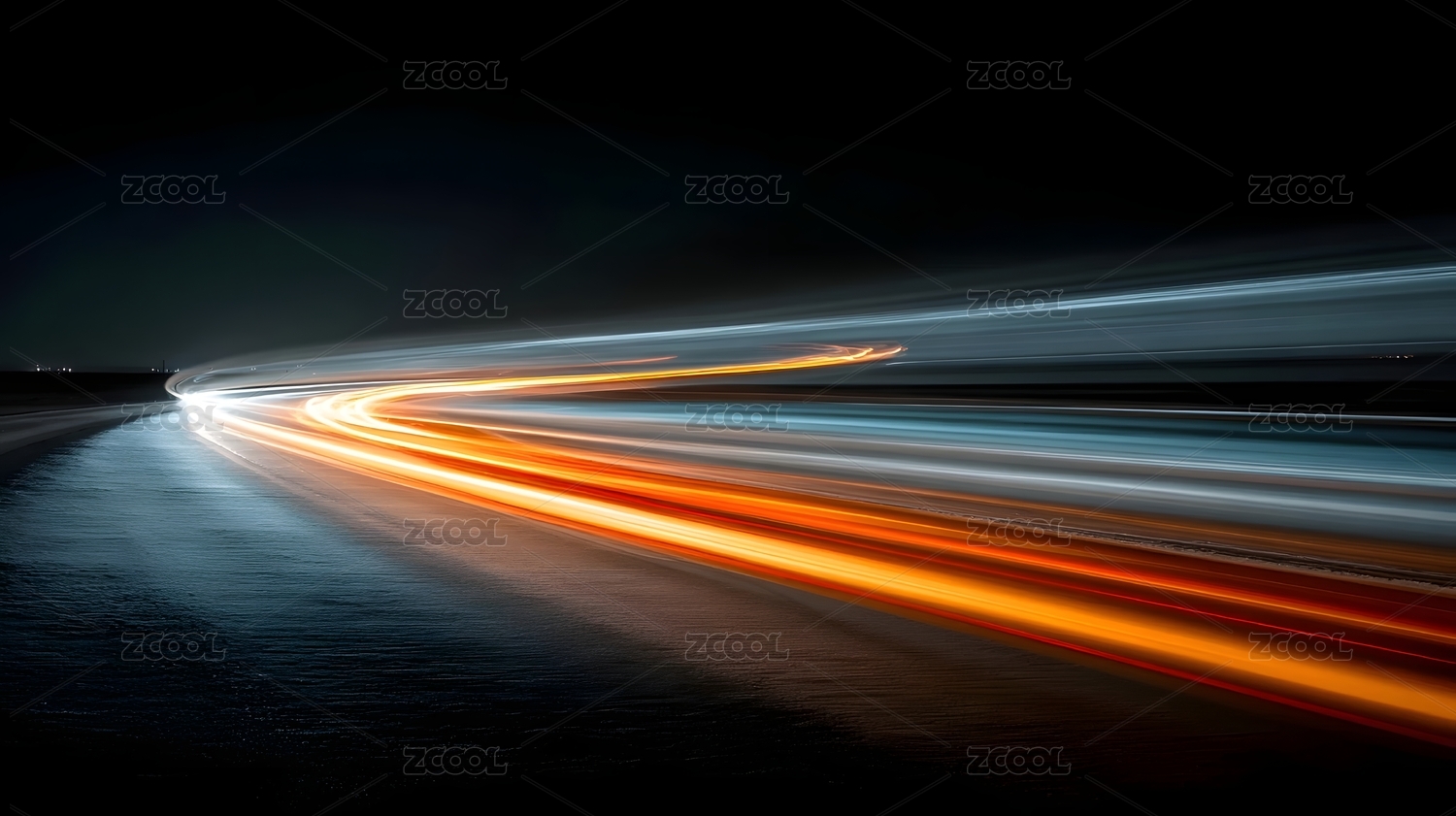 夜路橙蓝光芒星空