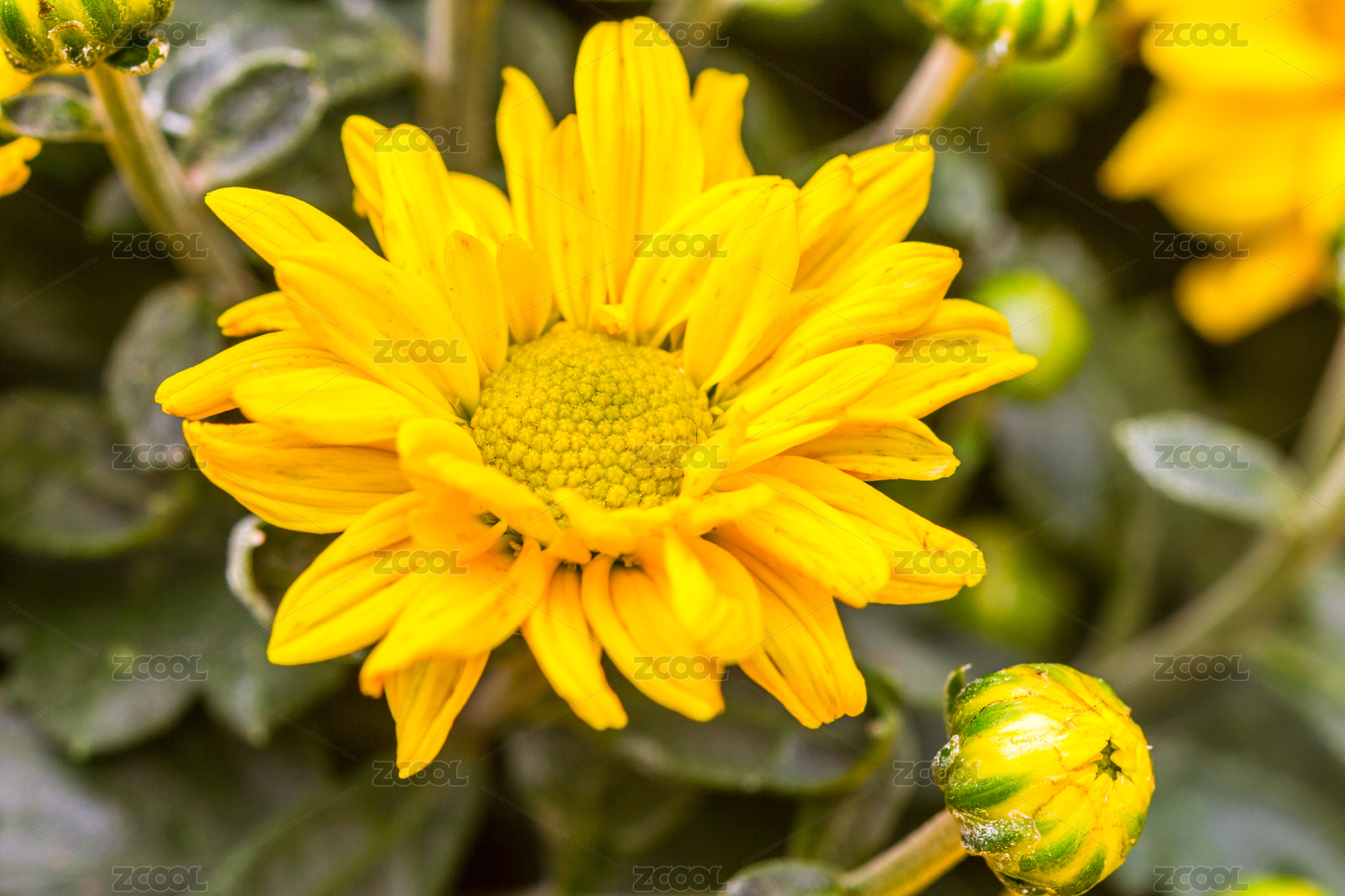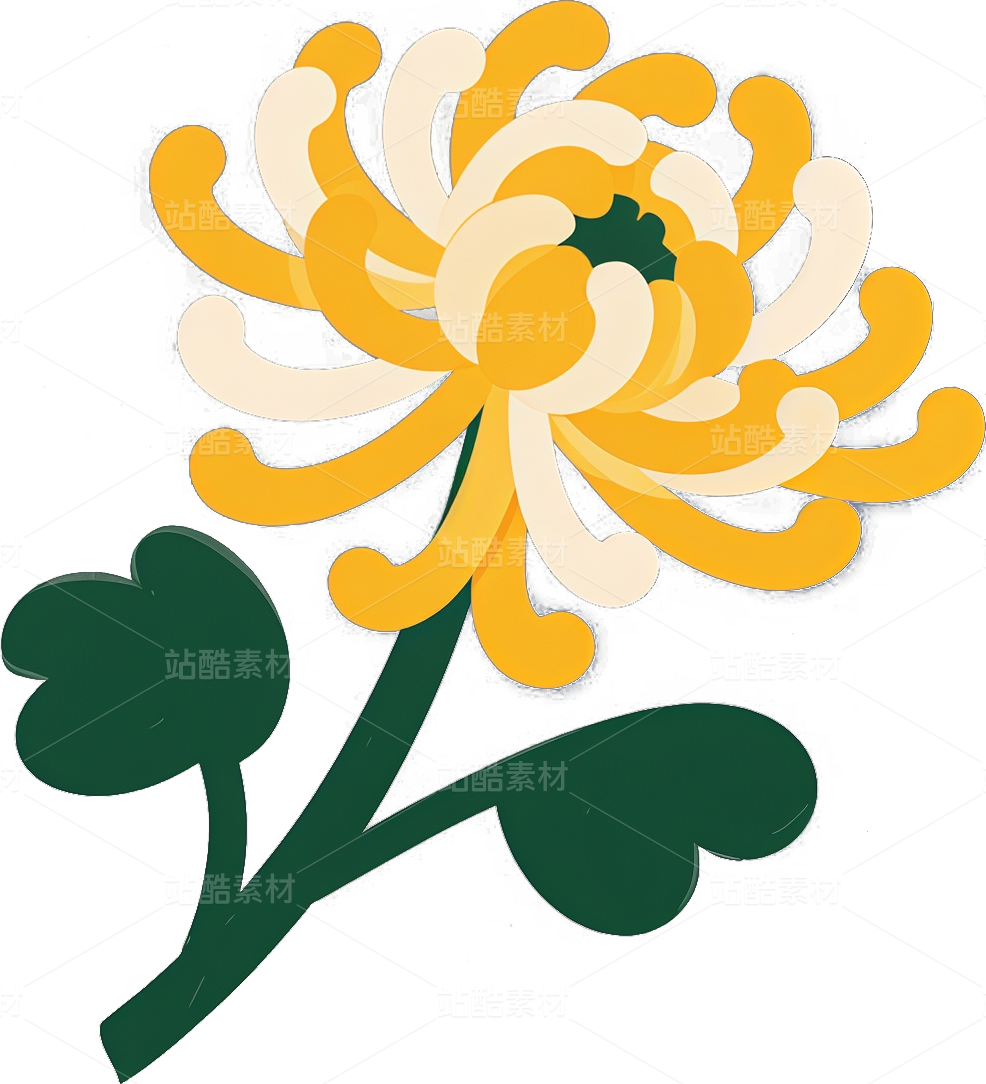 重阳节僧人在庭院中晾晒菊花水墨风格插画