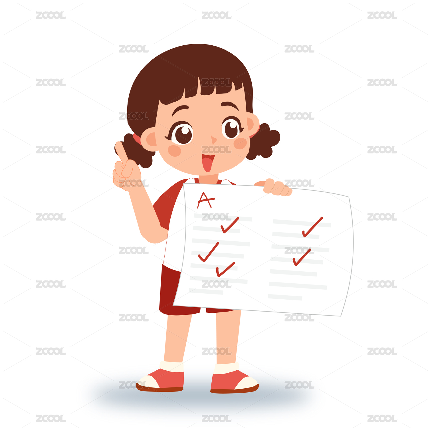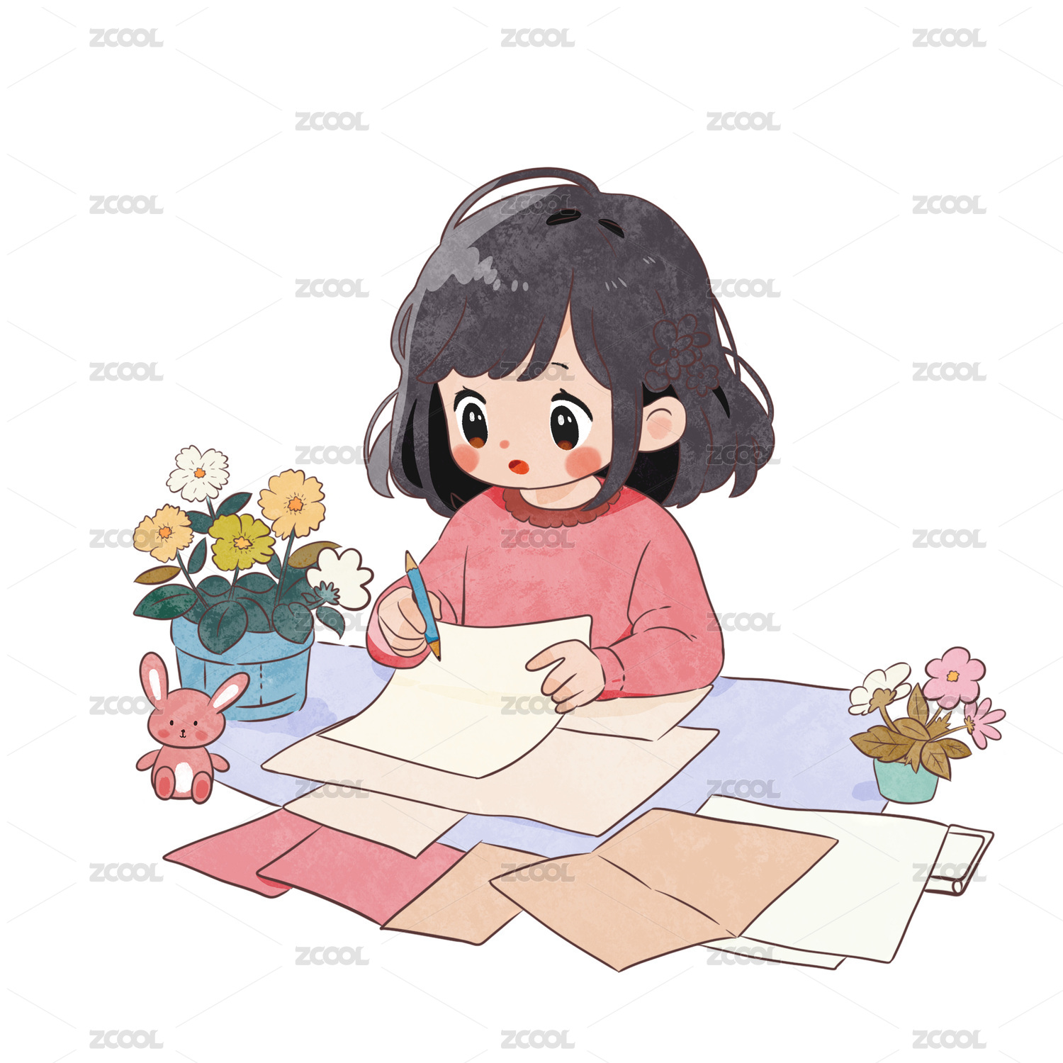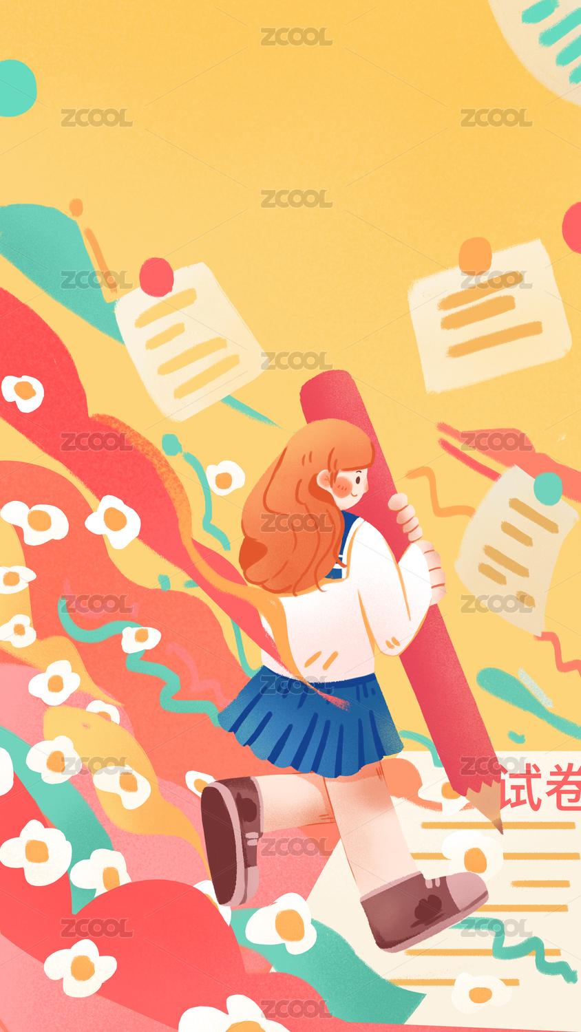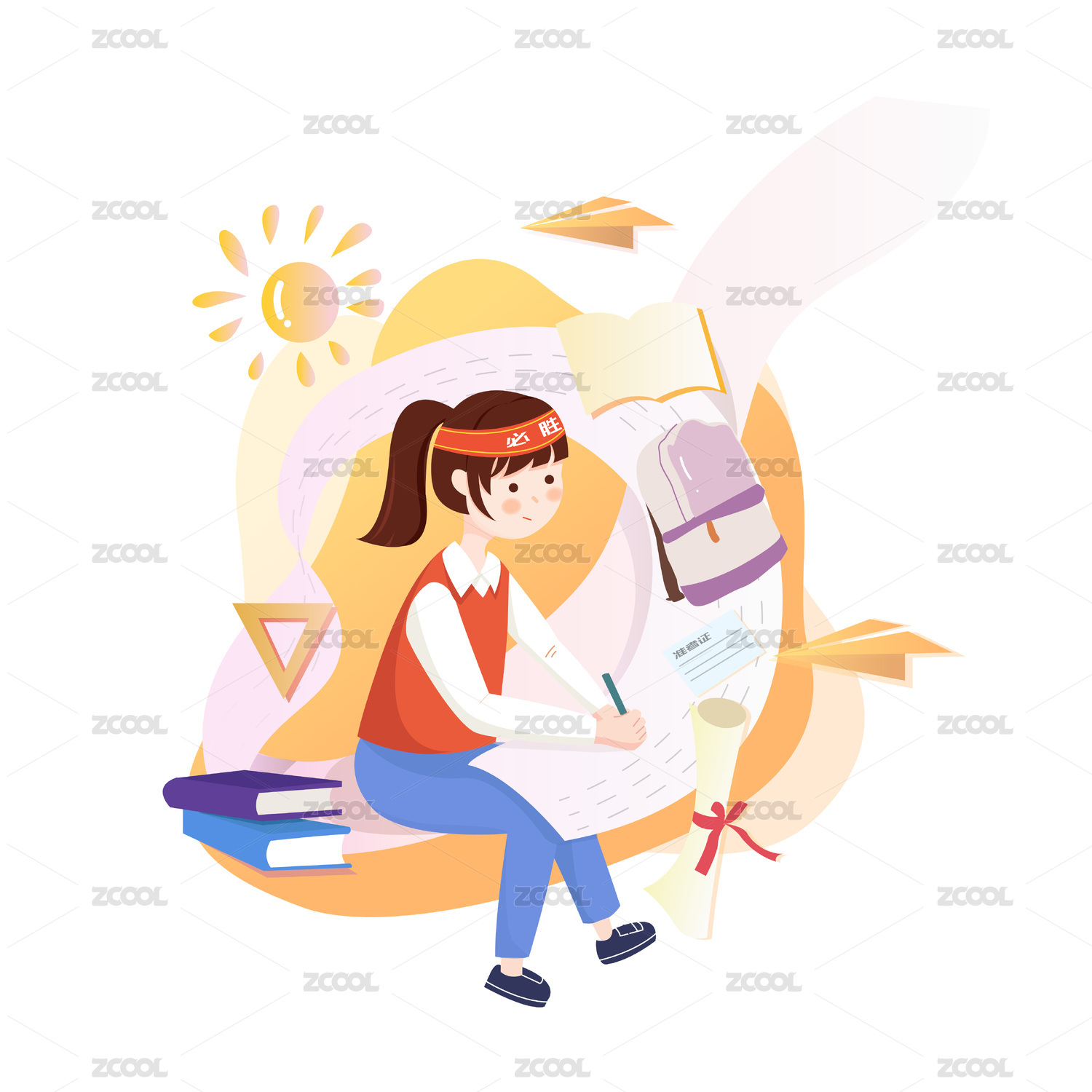 认真学习的女孩试卷堆叠考前冲刺逆袭插画