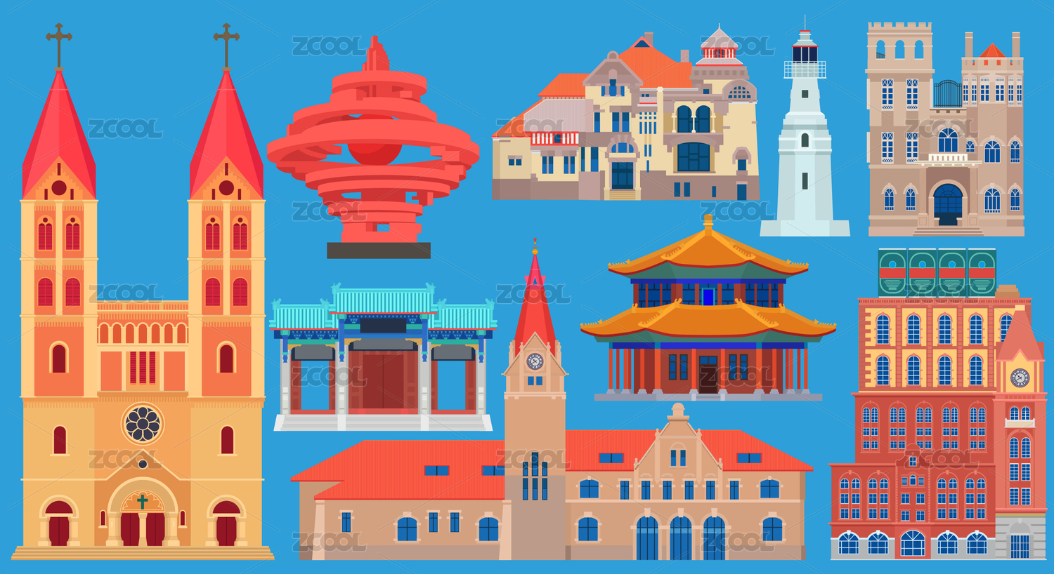 山东青岛旅游地标古建筑