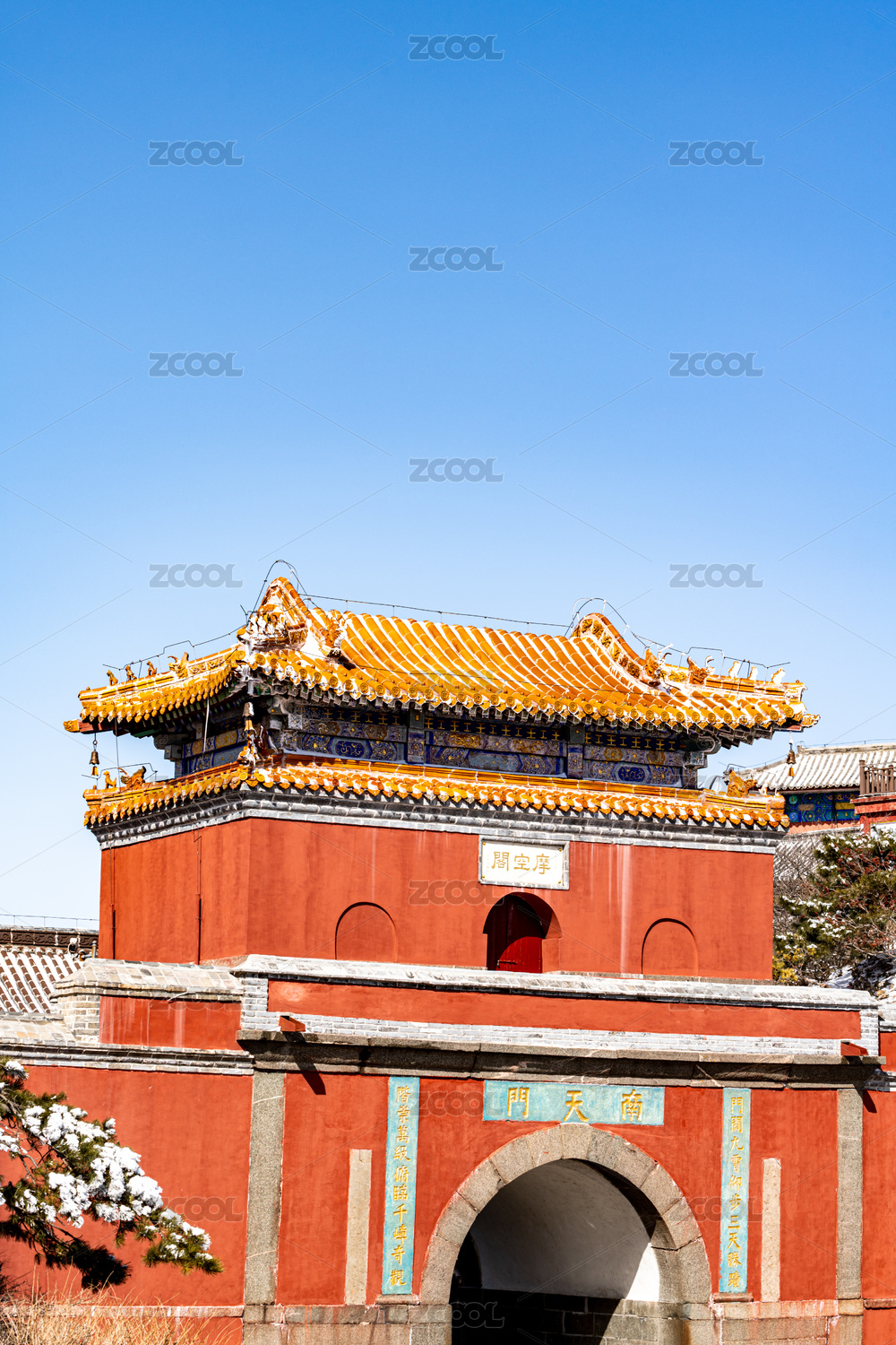 中国山东泰安泰山风景雪后自然风光建筑景观