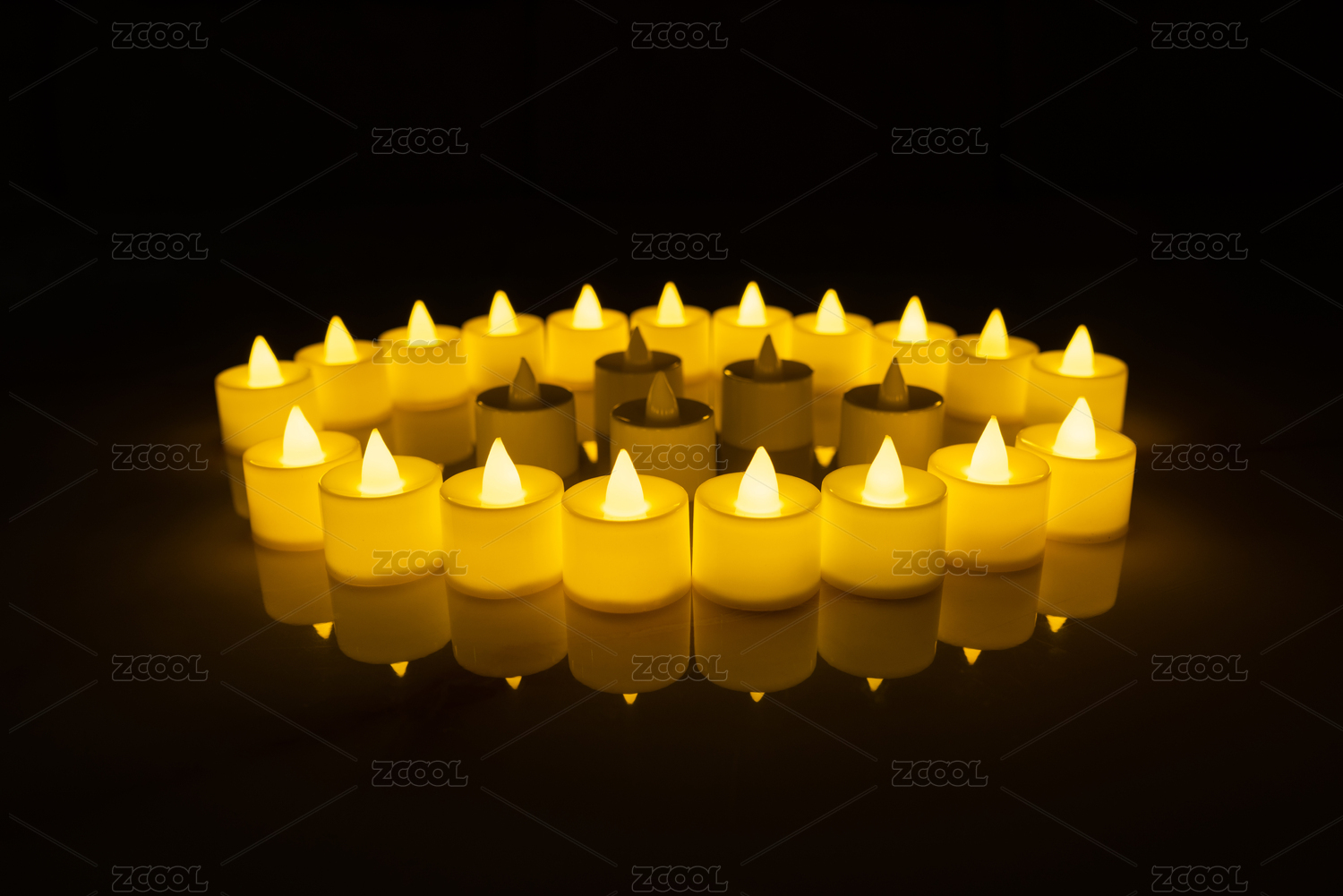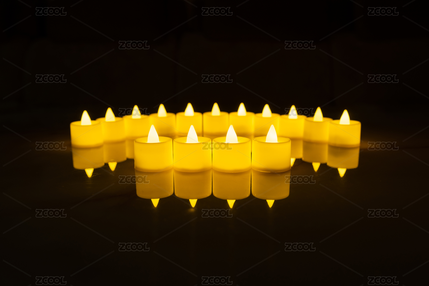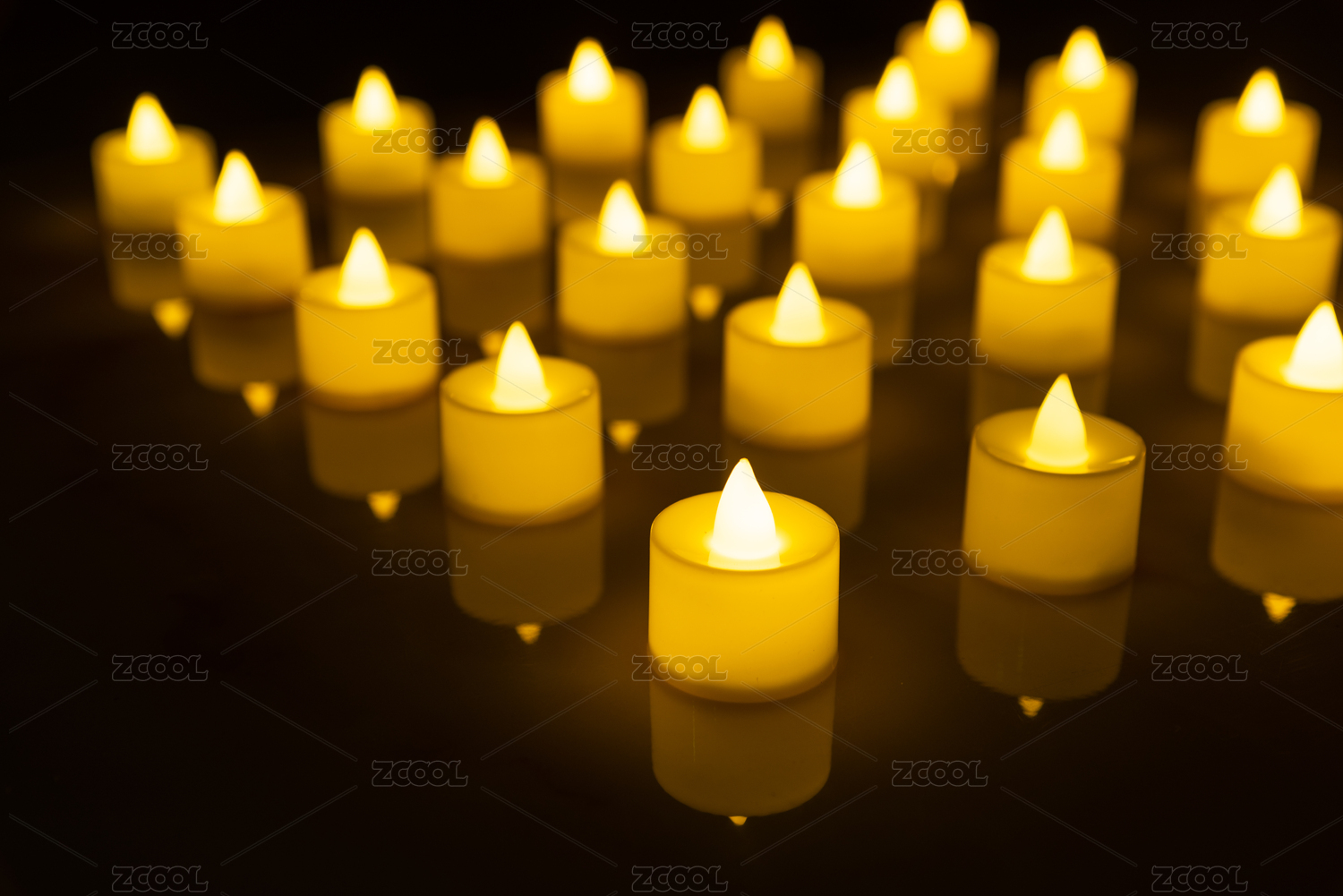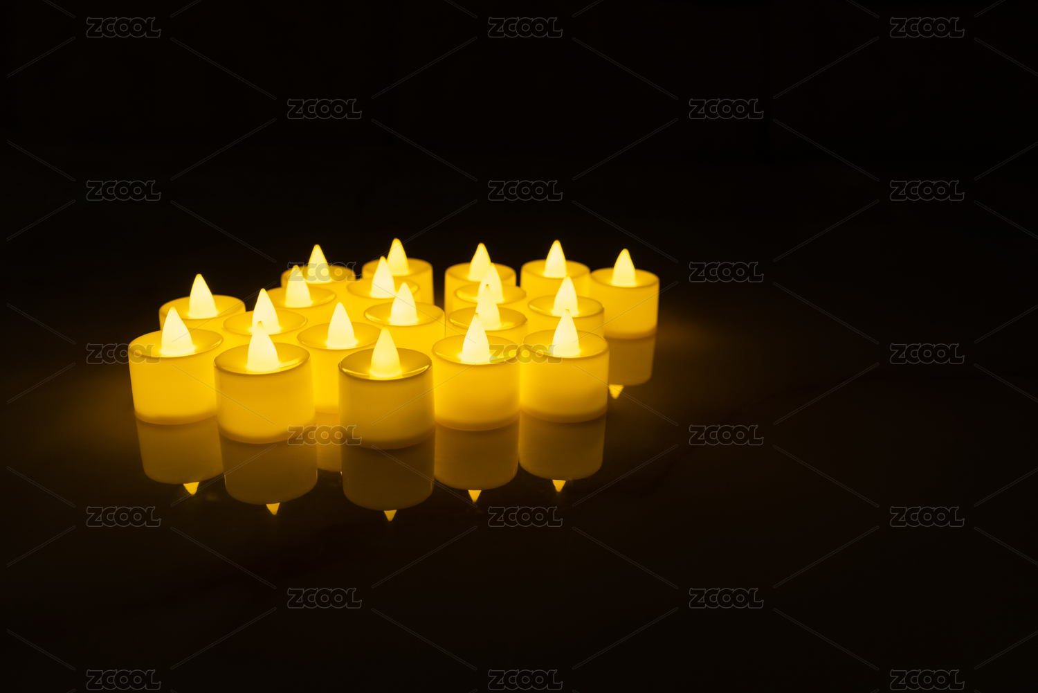 一堆发黄光的LED环保蜡烛