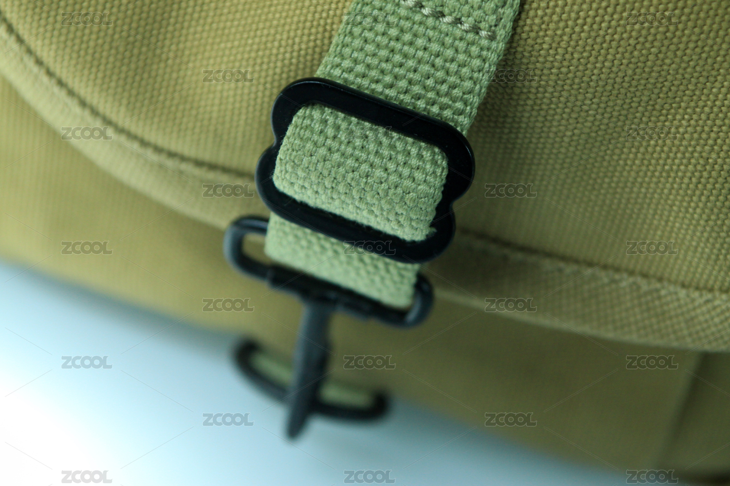 绿色背包的扣带细节
