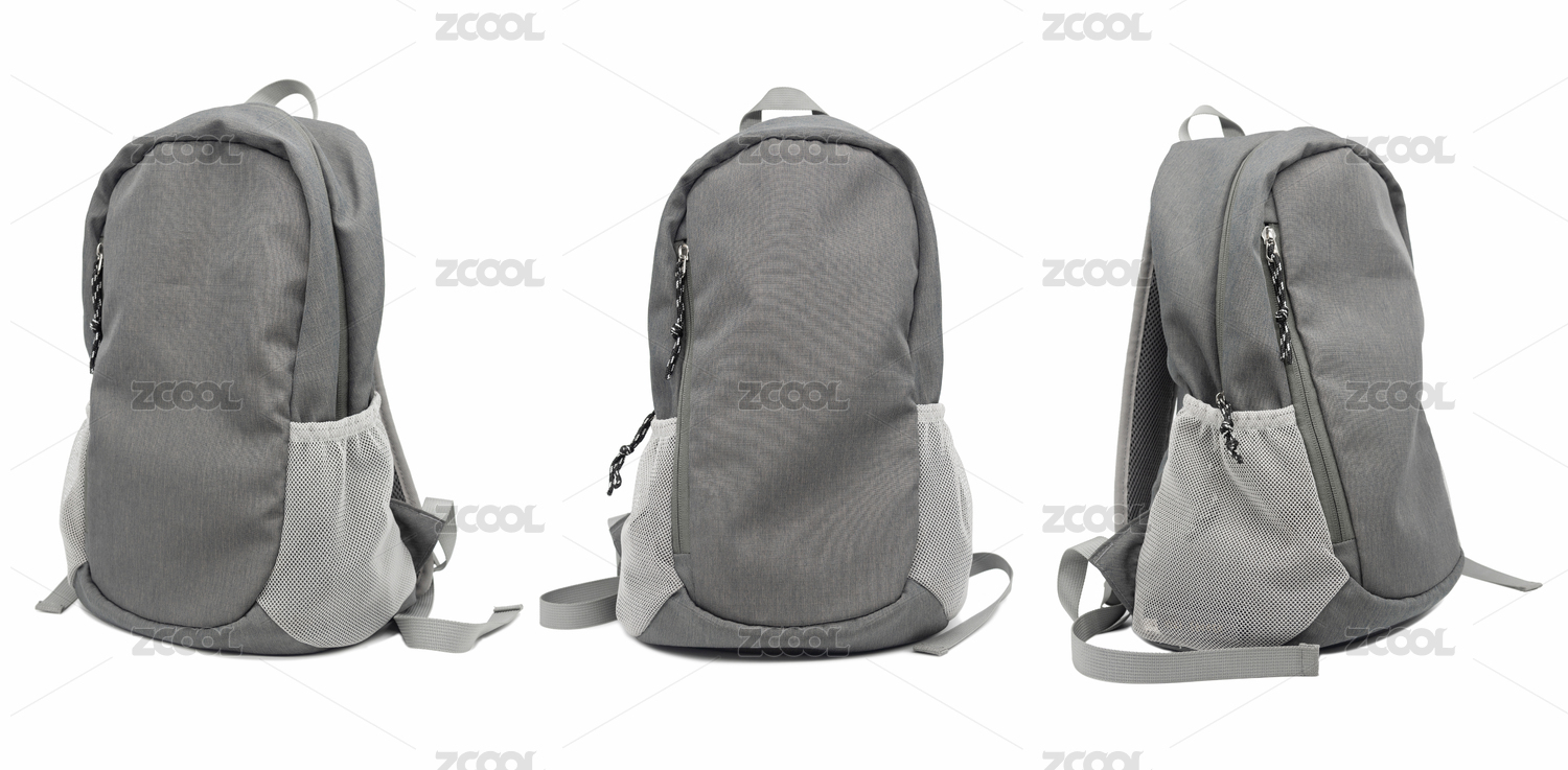 一组白底灰色帆布背包