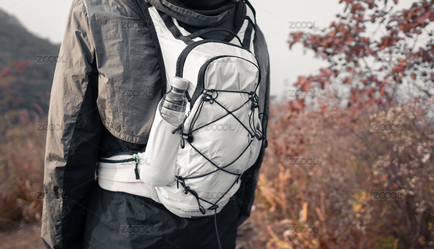 户外运动者背包特写