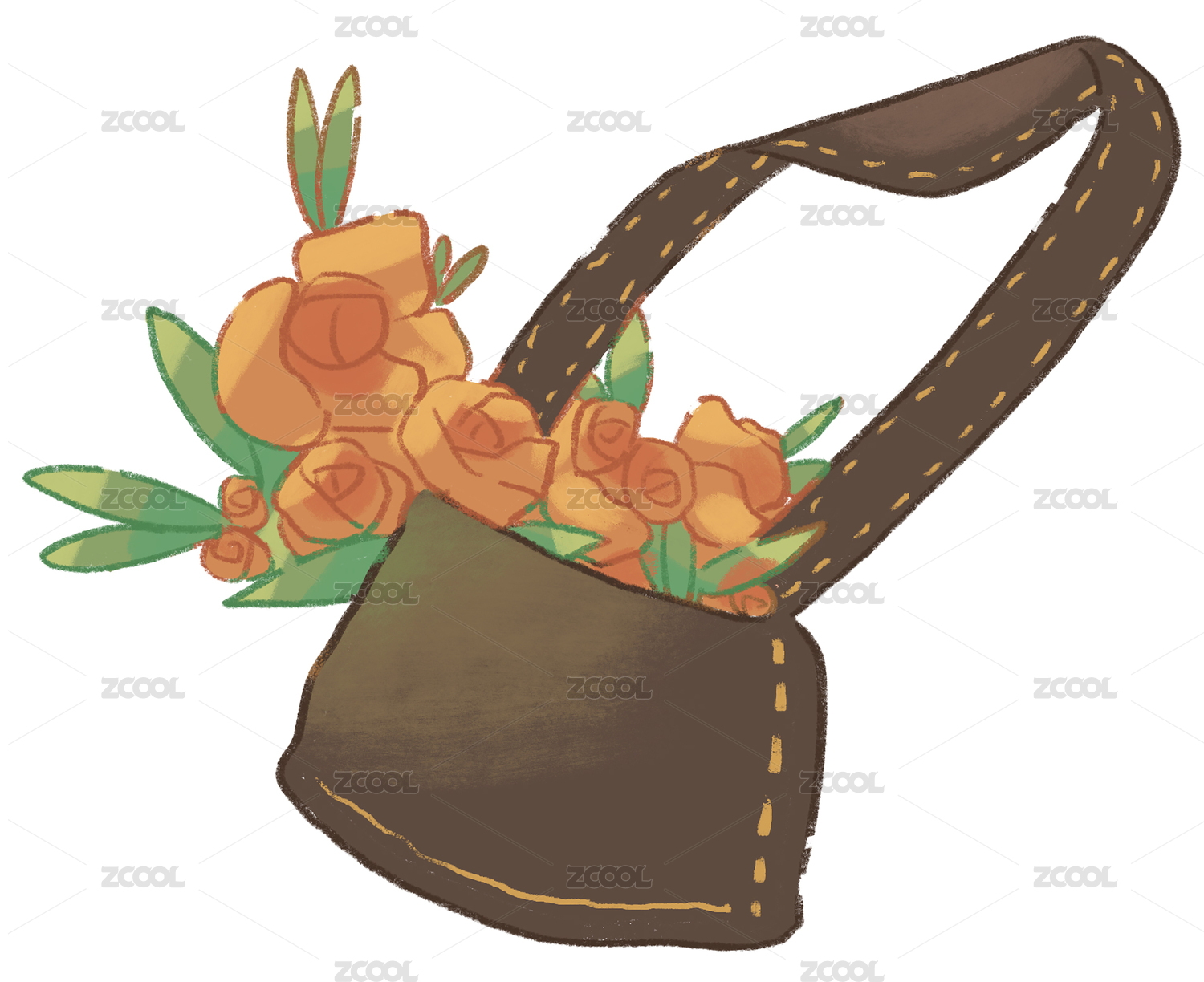 装满花朵的可爱背包元素
