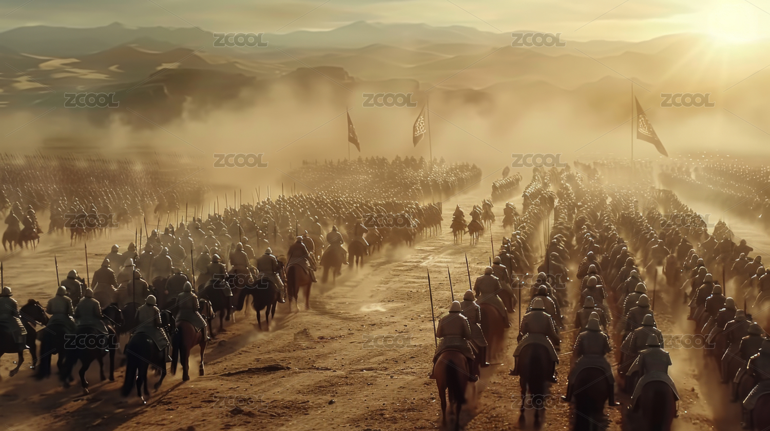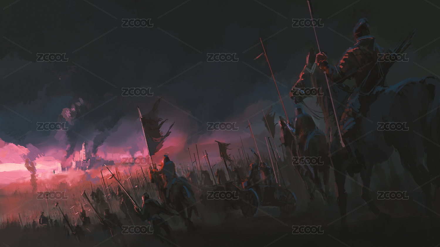 大军压境,古代战争场面,数字绘画。