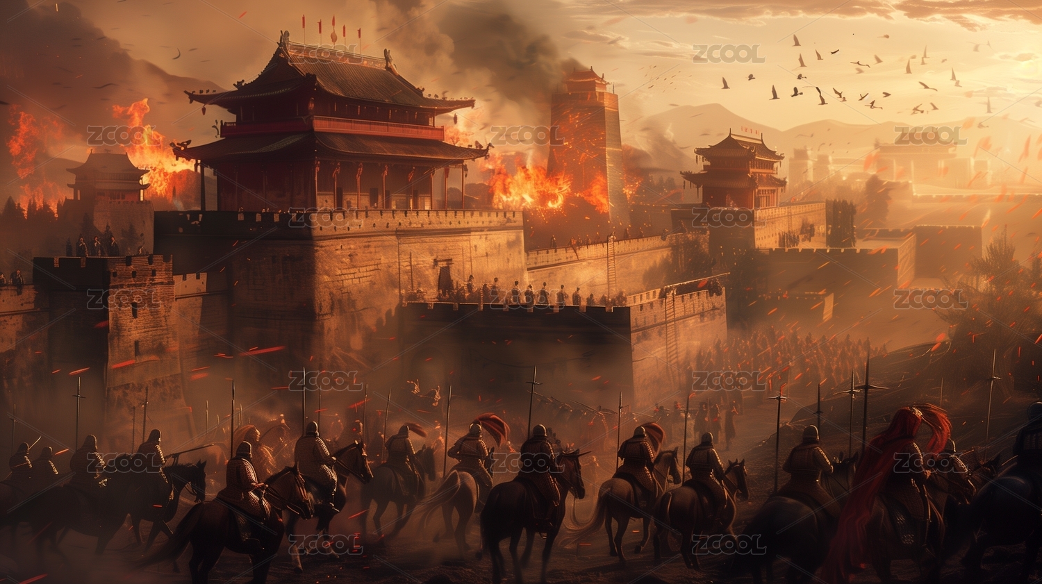 古代战争中的城楼场景