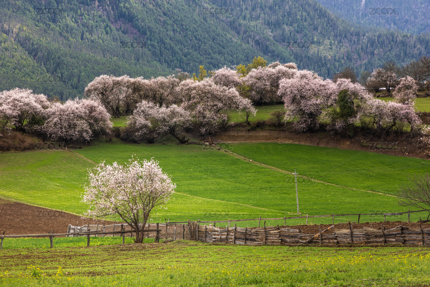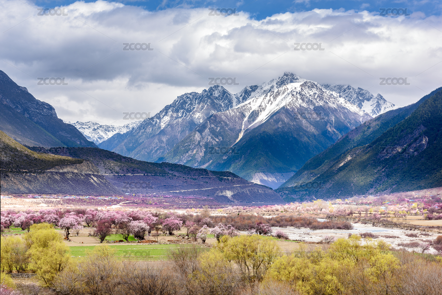 中国西藏林芝波密县城城市航拍雪山建筑风光