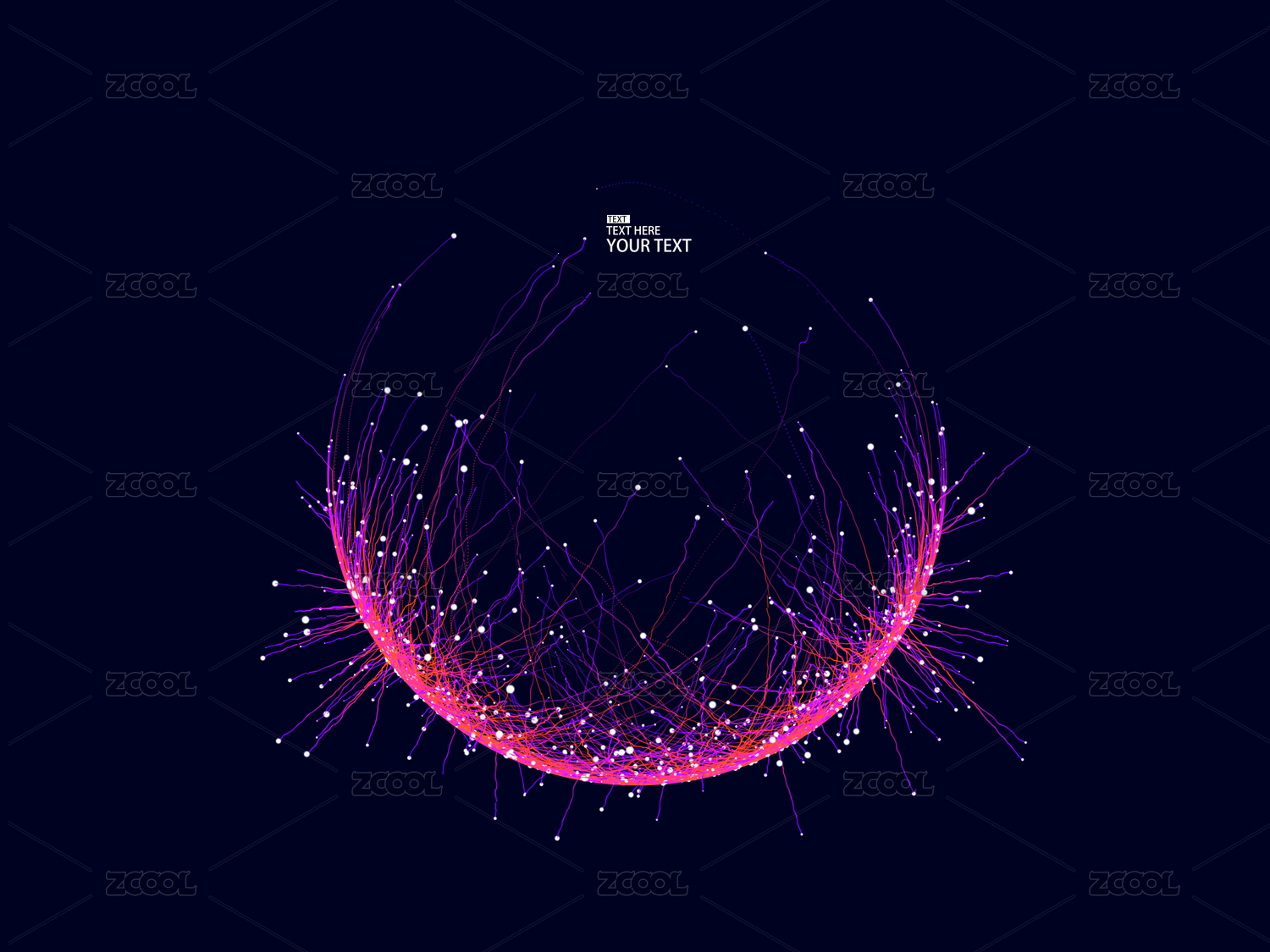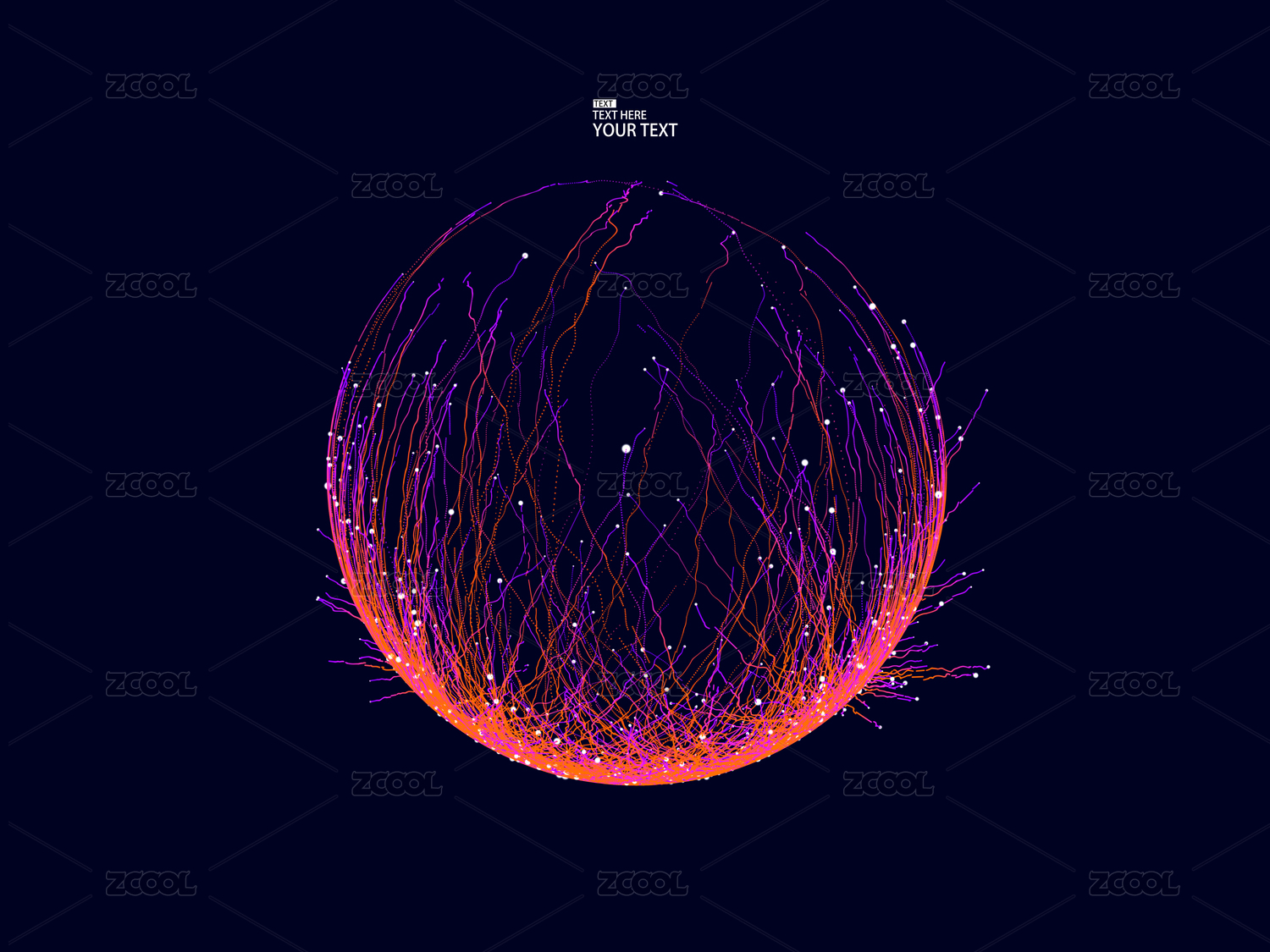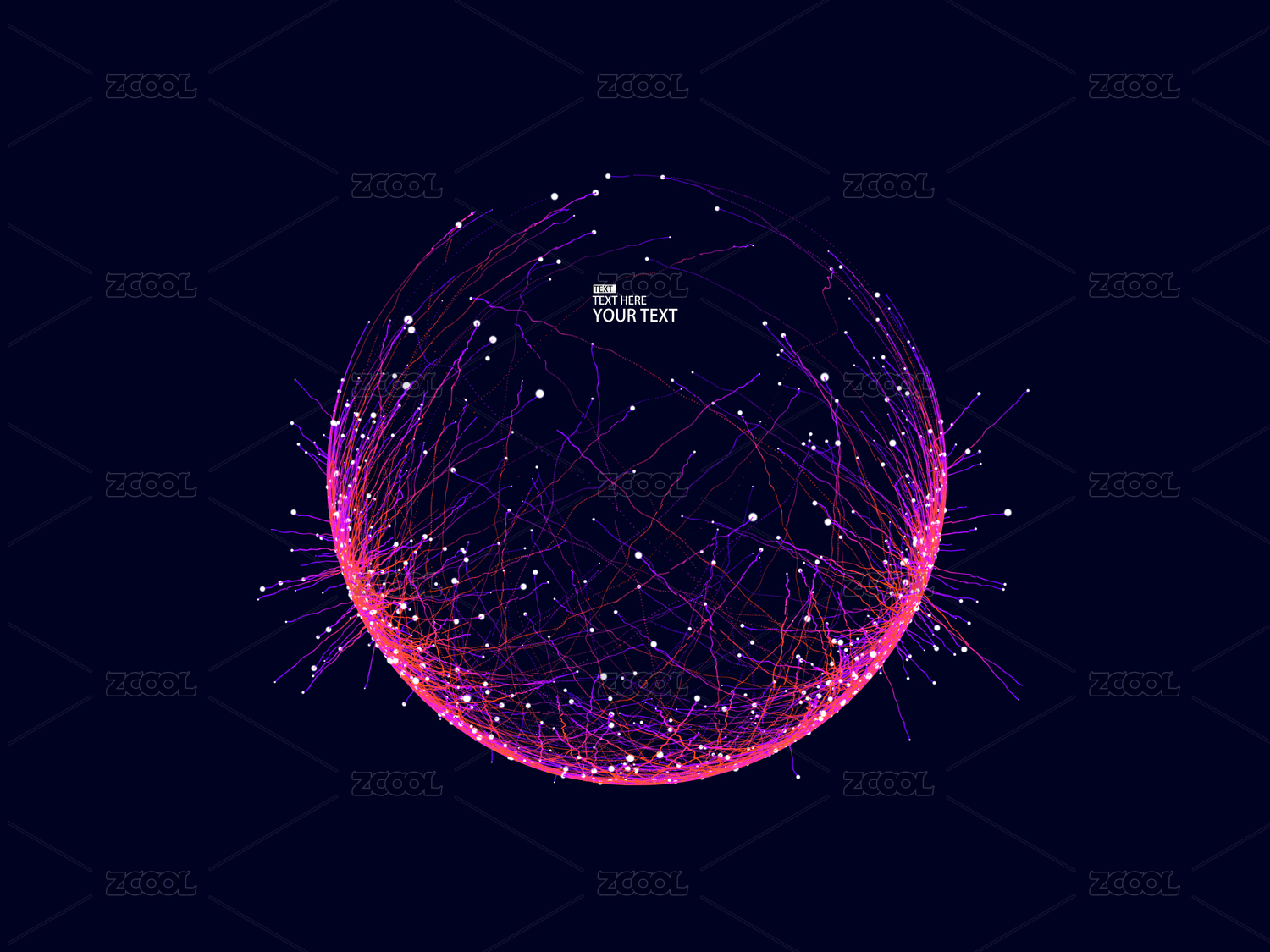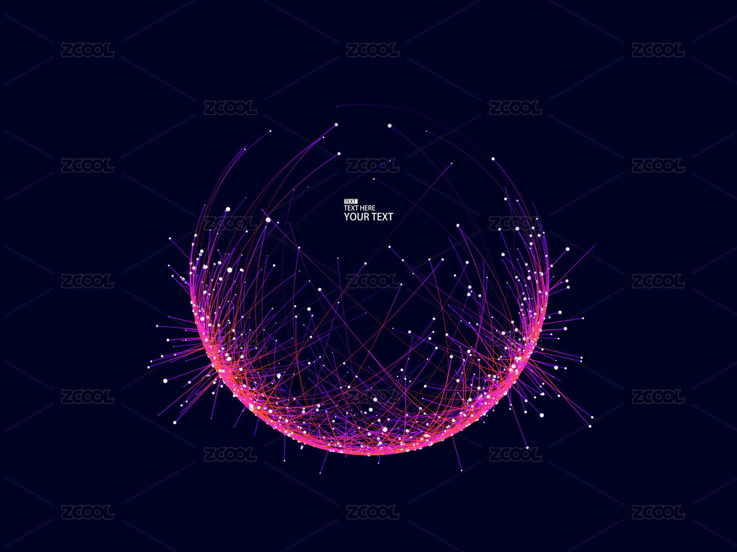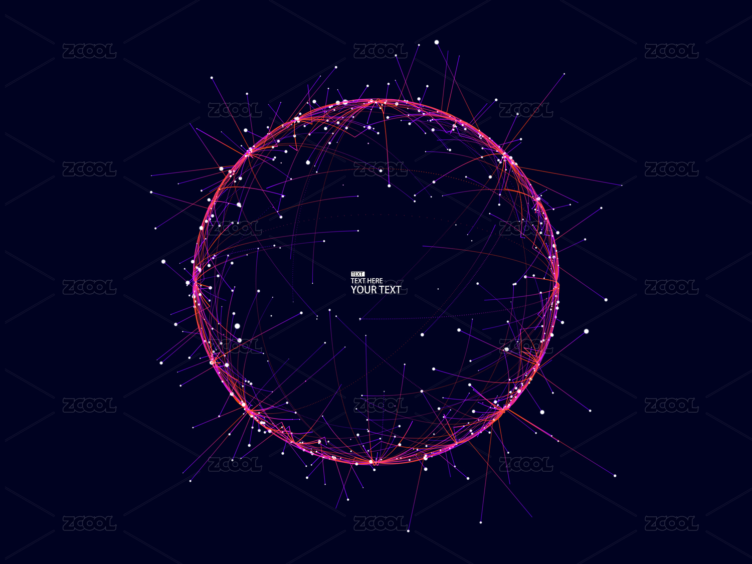 辐射线、点线连接的组成大数据科技矢量背景、寓意全球化、国际化,科学技术概念