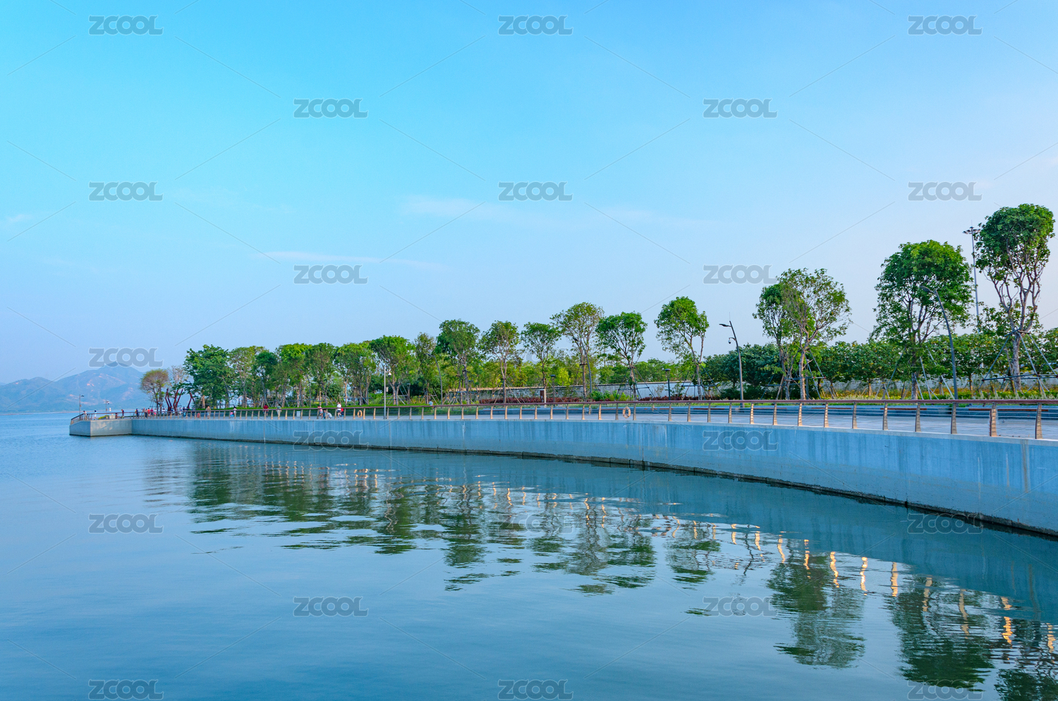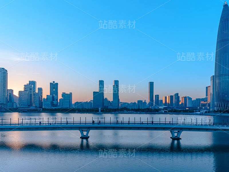 深圳湾深圳人才公园滨海CBD摩天大楼夕阳余晖