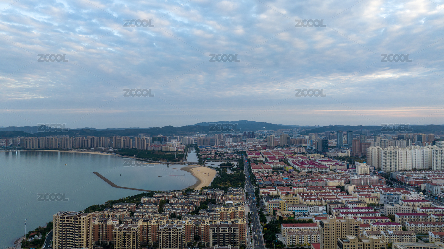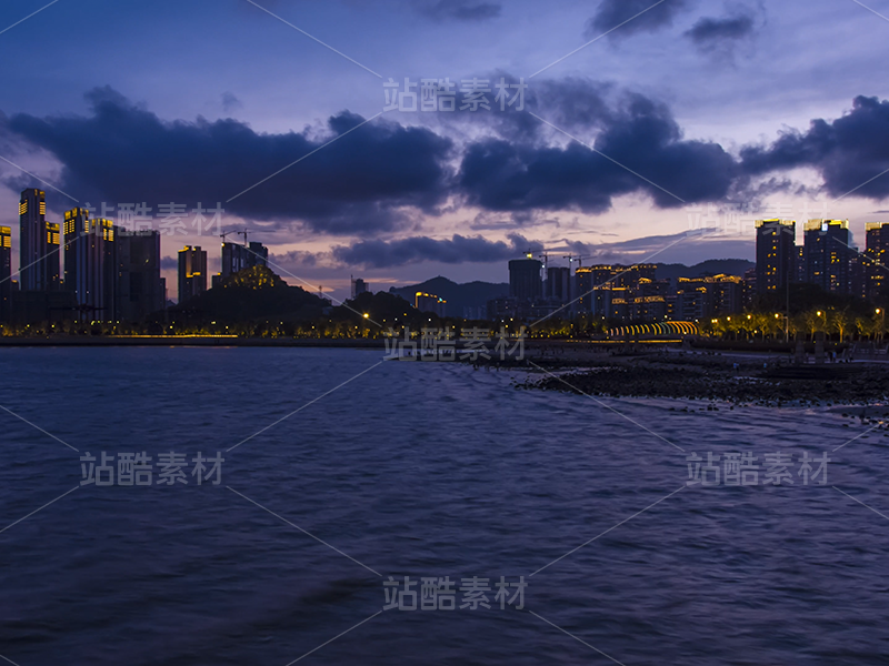 深圳湾滨海豪宅建筑群与夕阳晚霞云彩