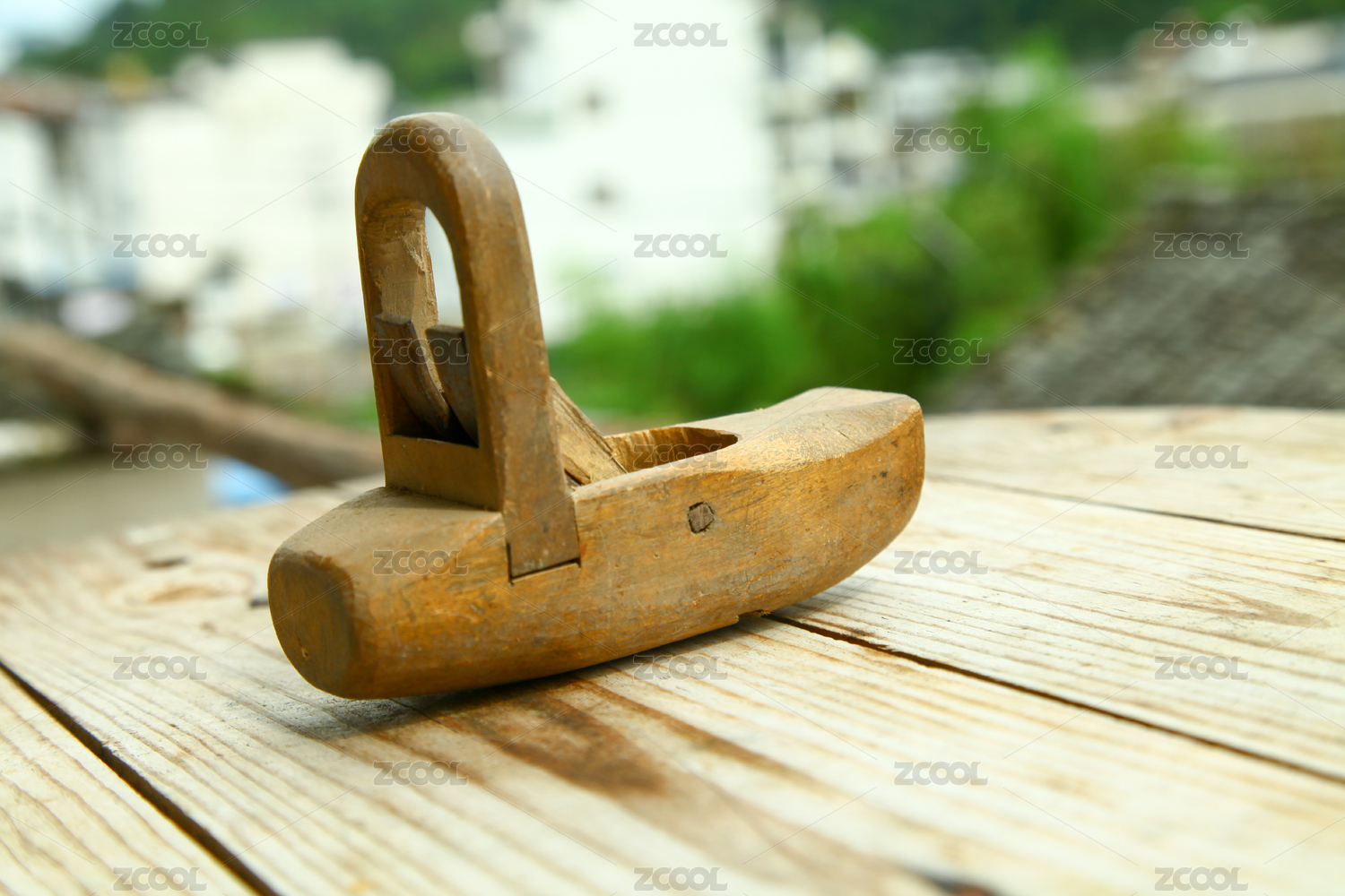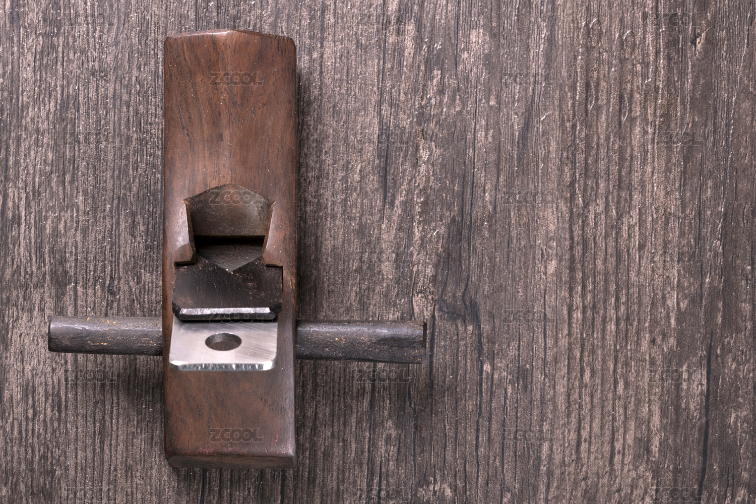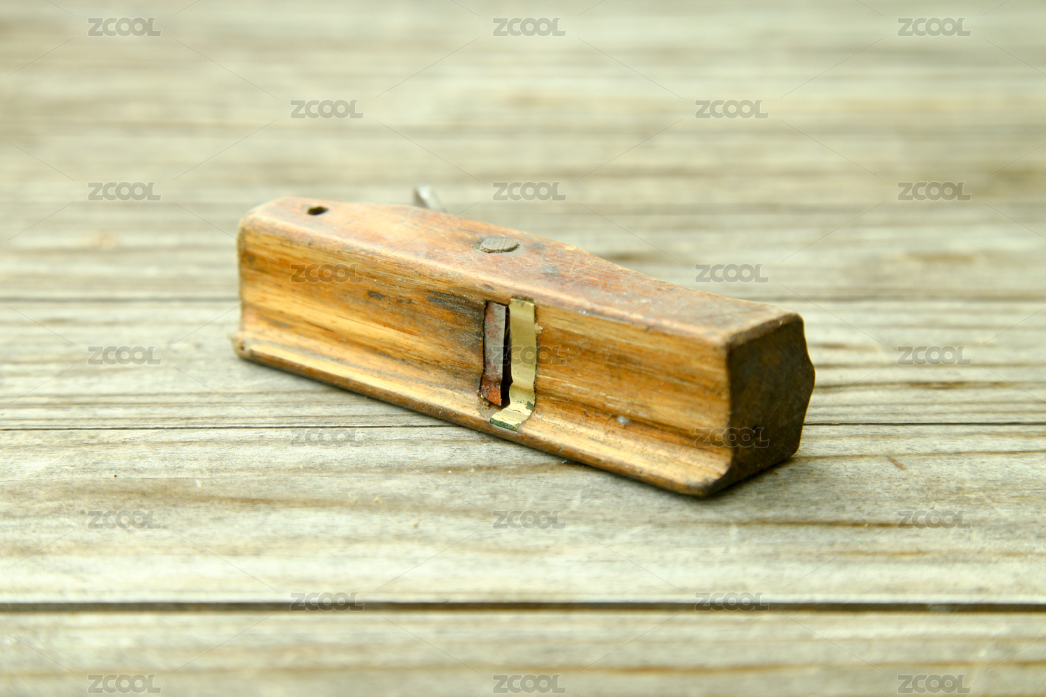 摆放在桌面上的由硬木制作的木工刨子