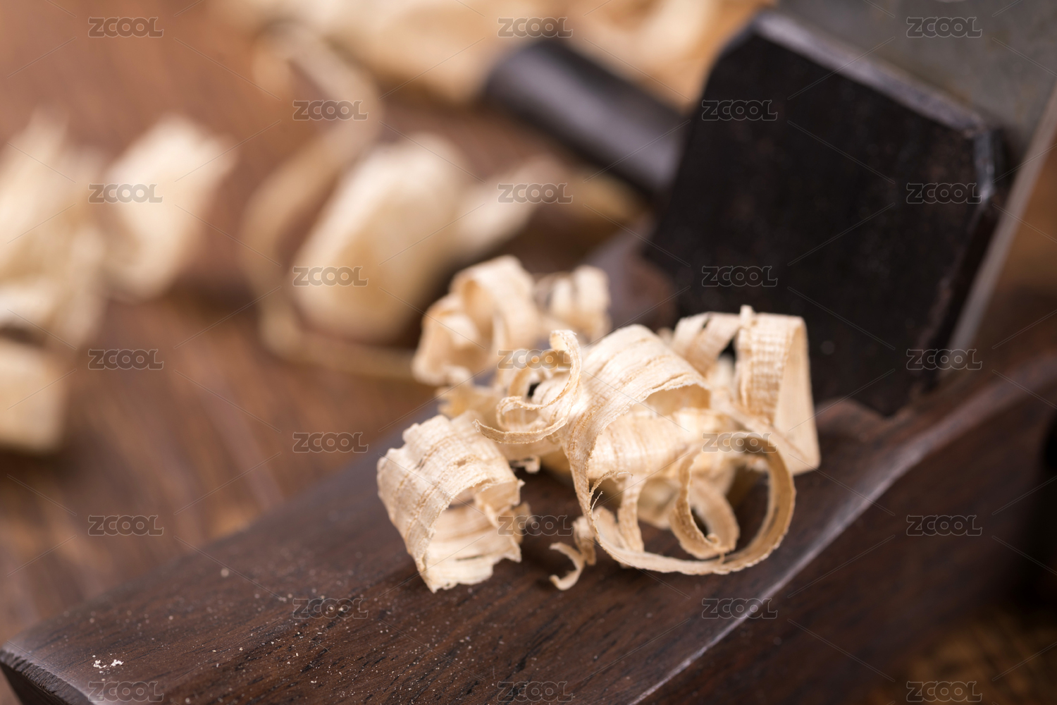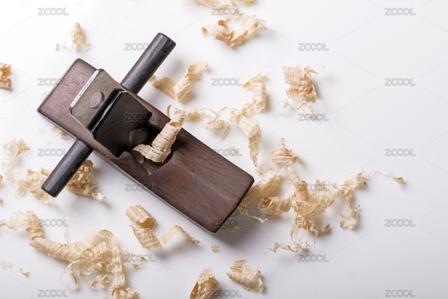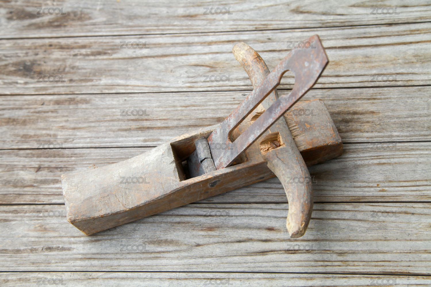 摆放在桌面上的由硬木制作的木工刨子