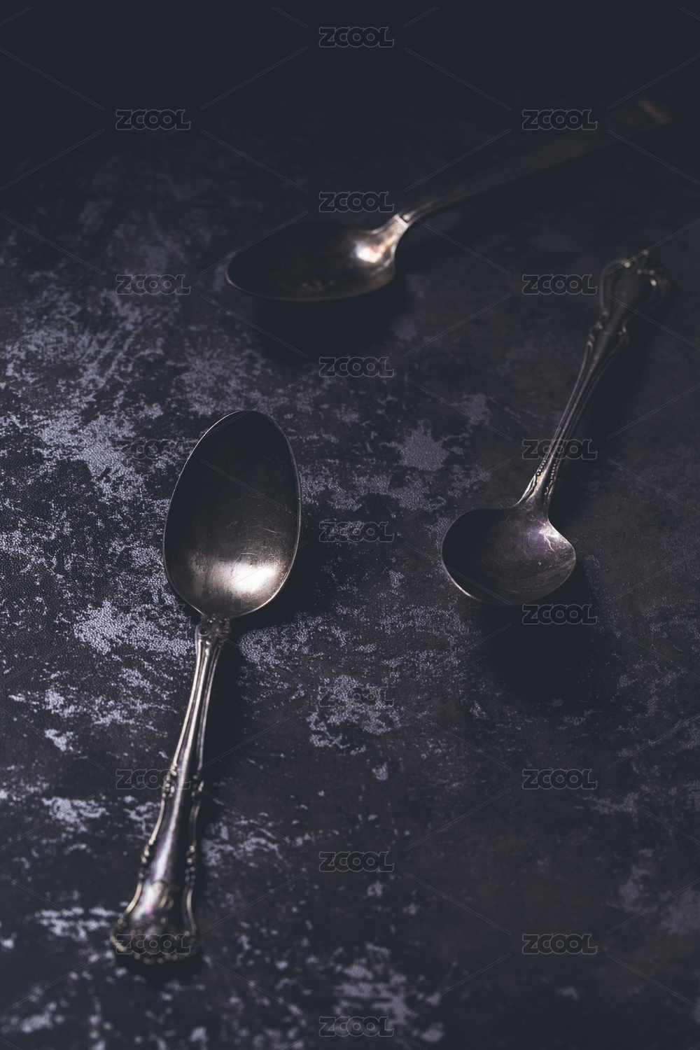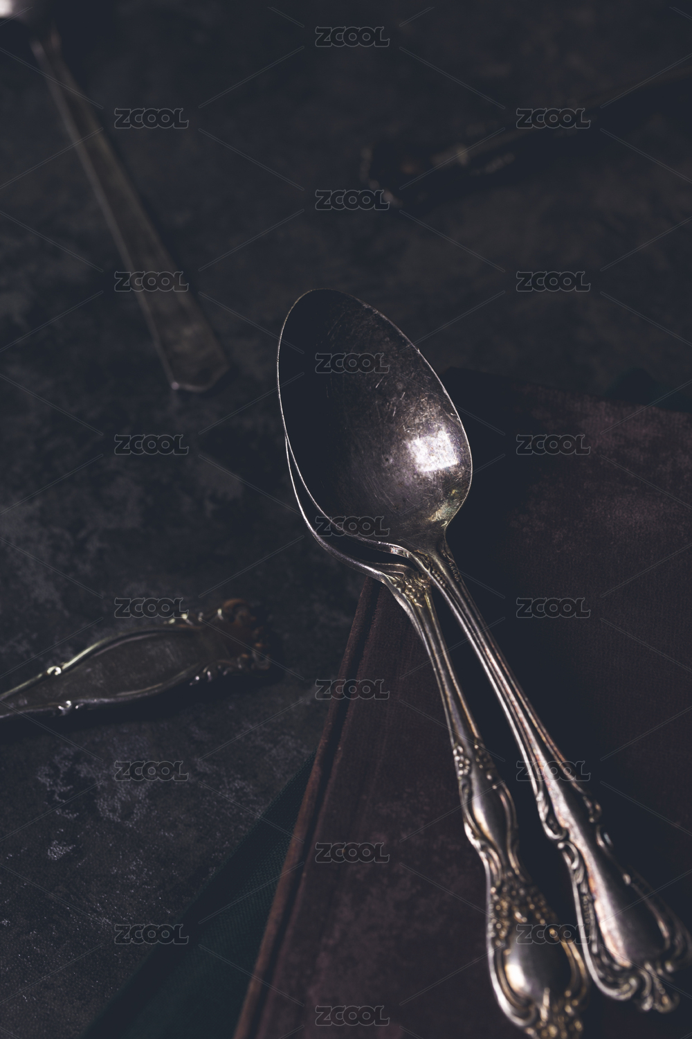 放在餐桌上的高档不锈钢西餐具刀叉勺子