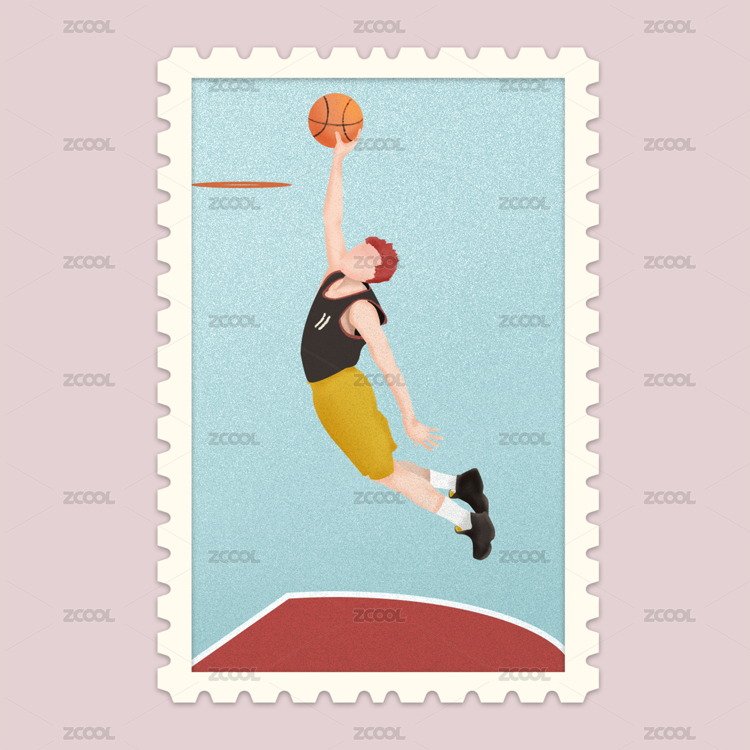 篮球邮票插画