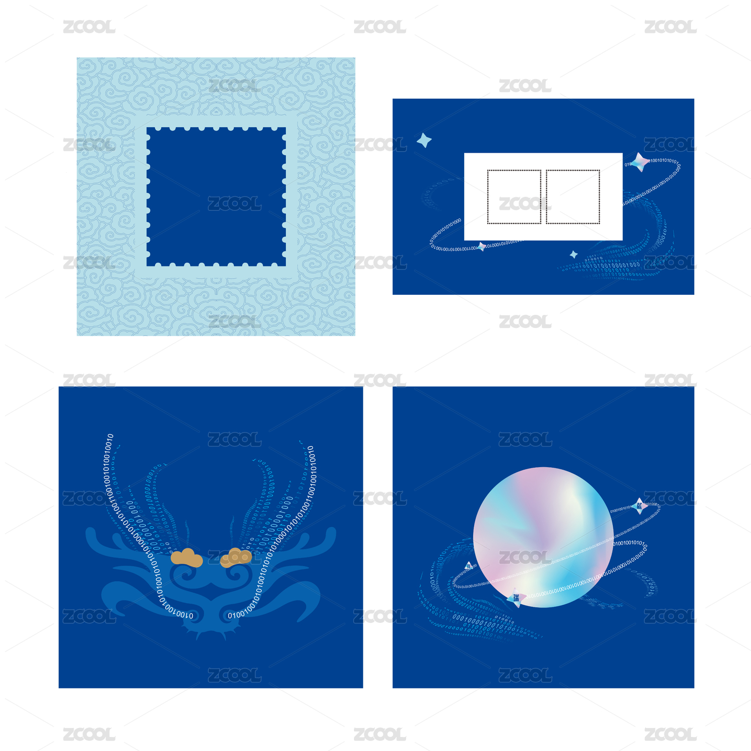 中式纹样中国龙纹饰吉祥图案龙年邮票图腾