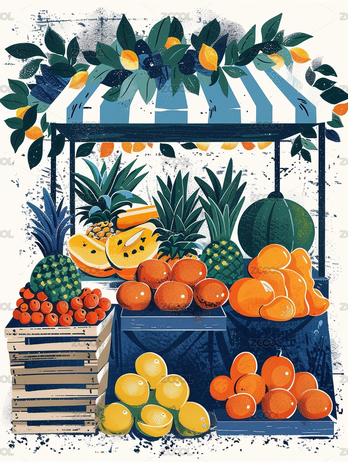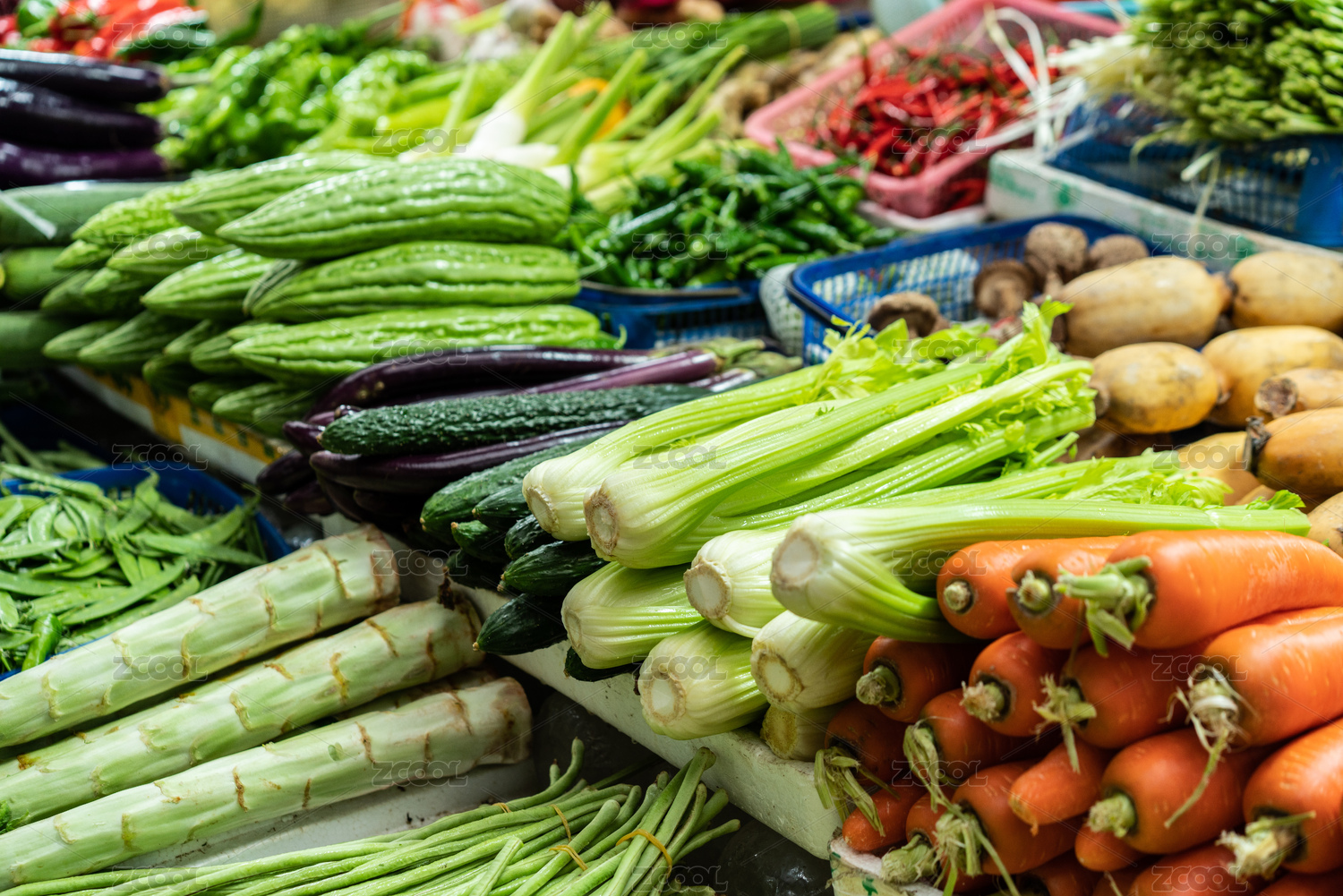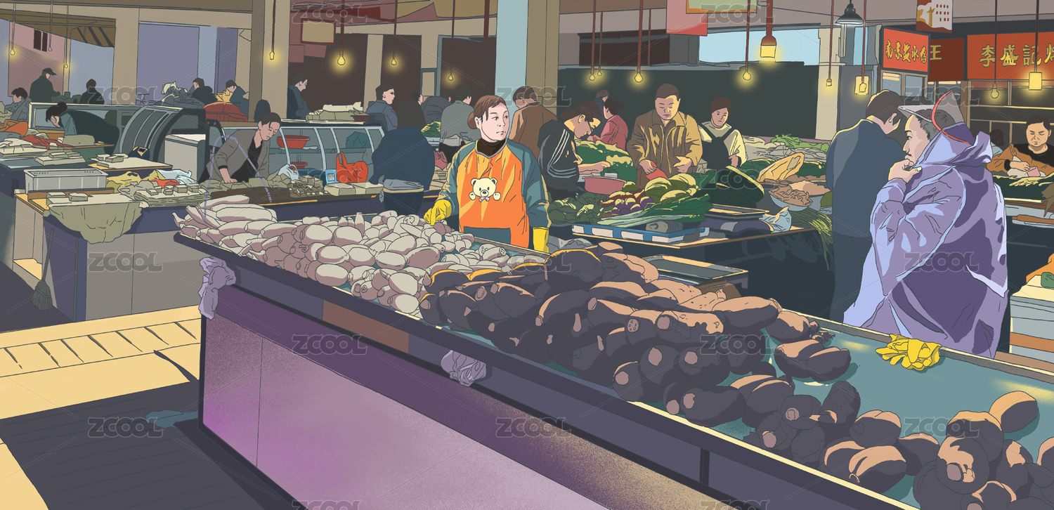 热闹赶集市菜市场摆摊卖买菜买卖水果市集