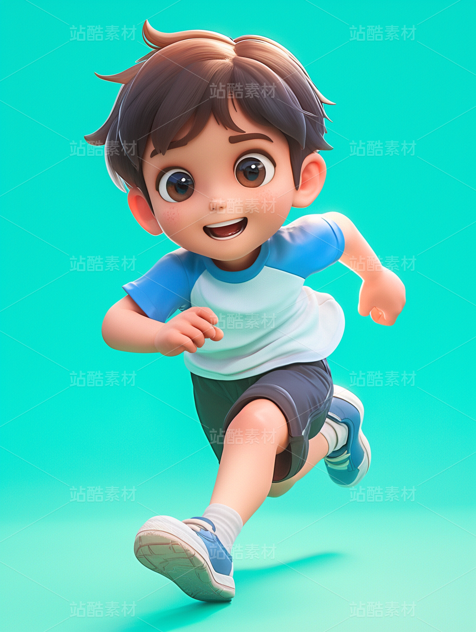 彩色3D卡通男孩女孩运动奔跑