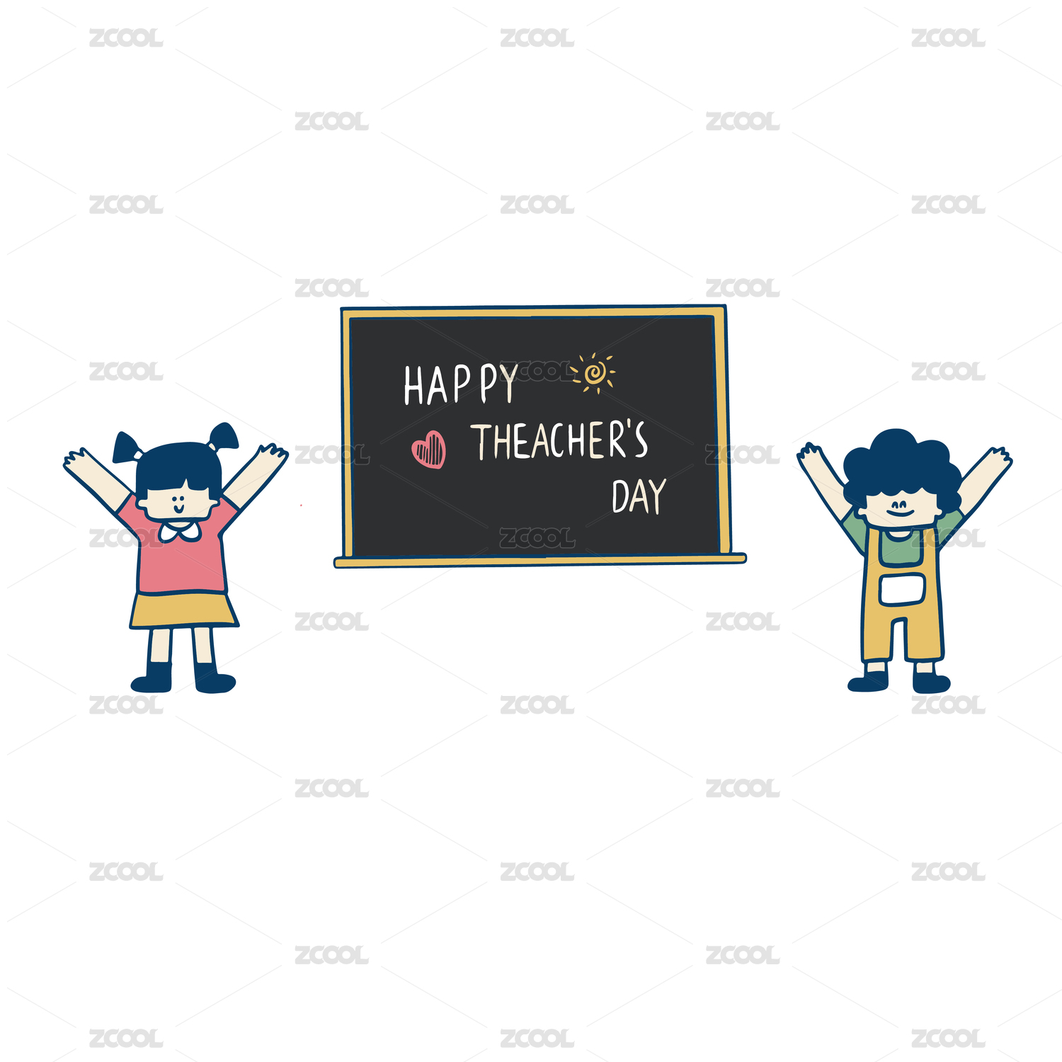 手绘卡通男孩女孩庆祝教师节矢量插画