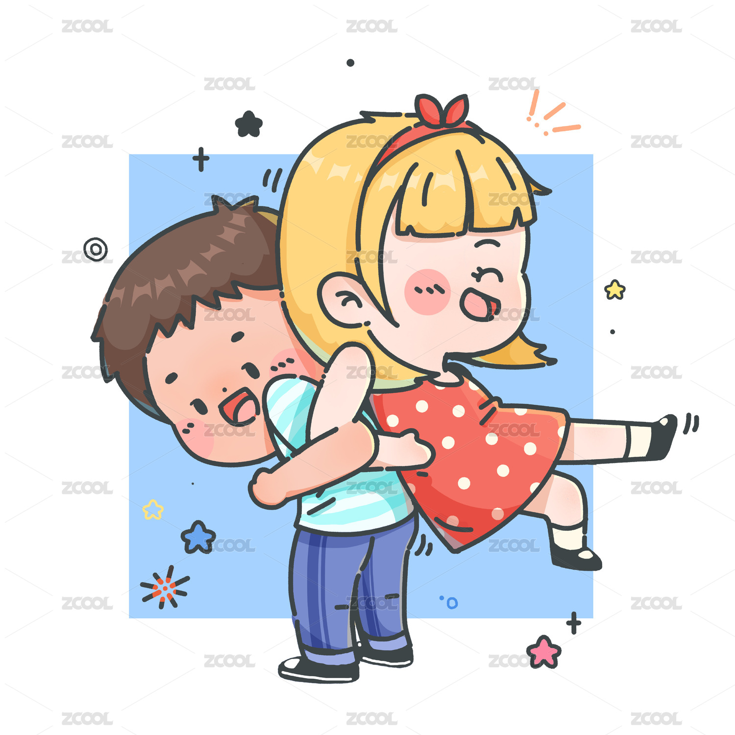 卡通男孩和女孩互动游戏