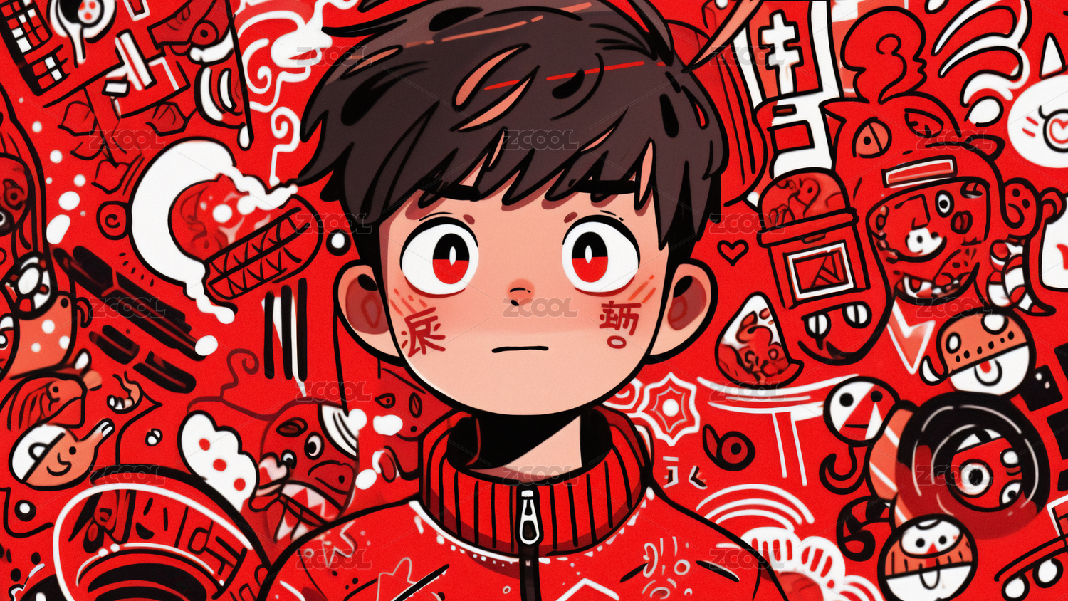 2024龙年穿着红色衣服的卡通男孩
