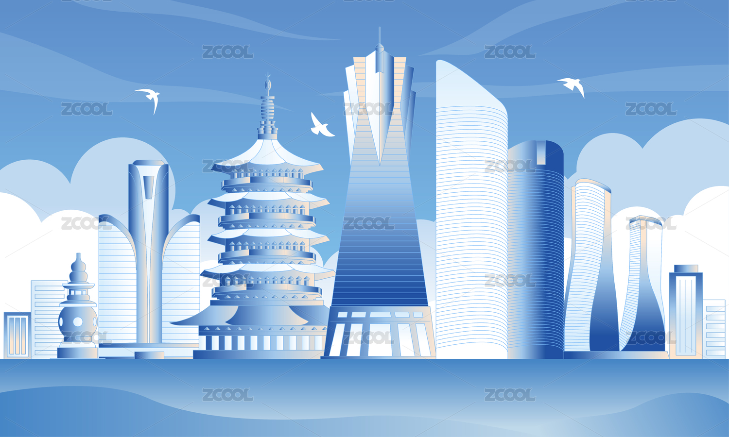 杭州旅游城市插画
