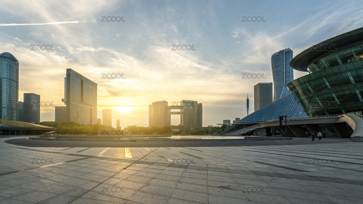 日落时分杭州城市天际线