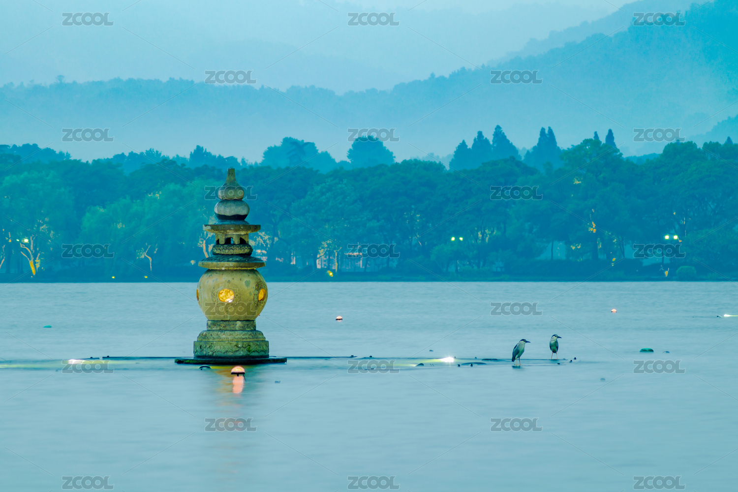 杭州西湖三潭印月夜景