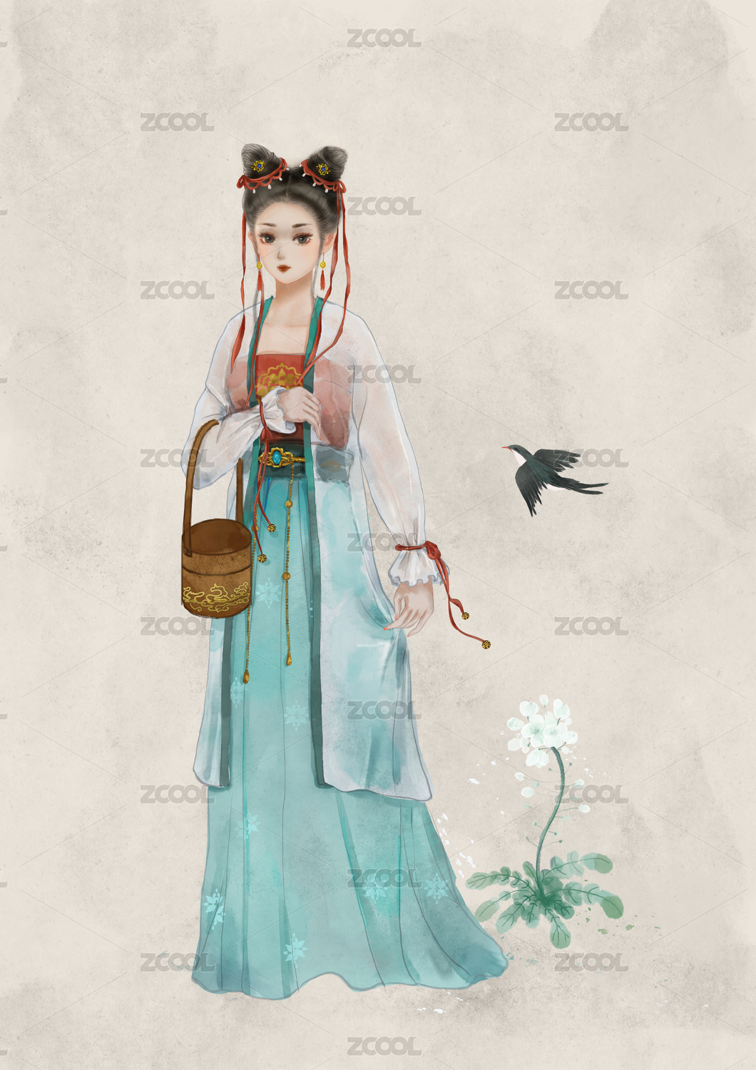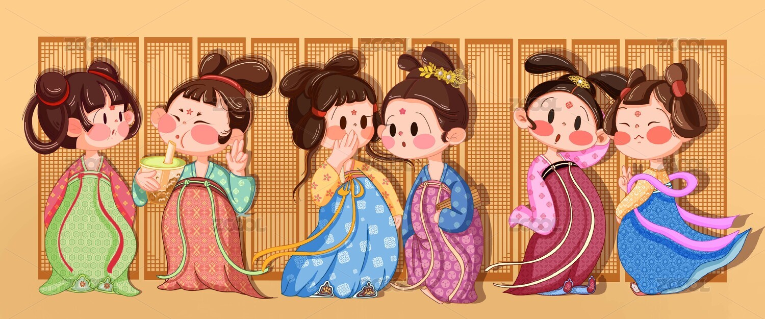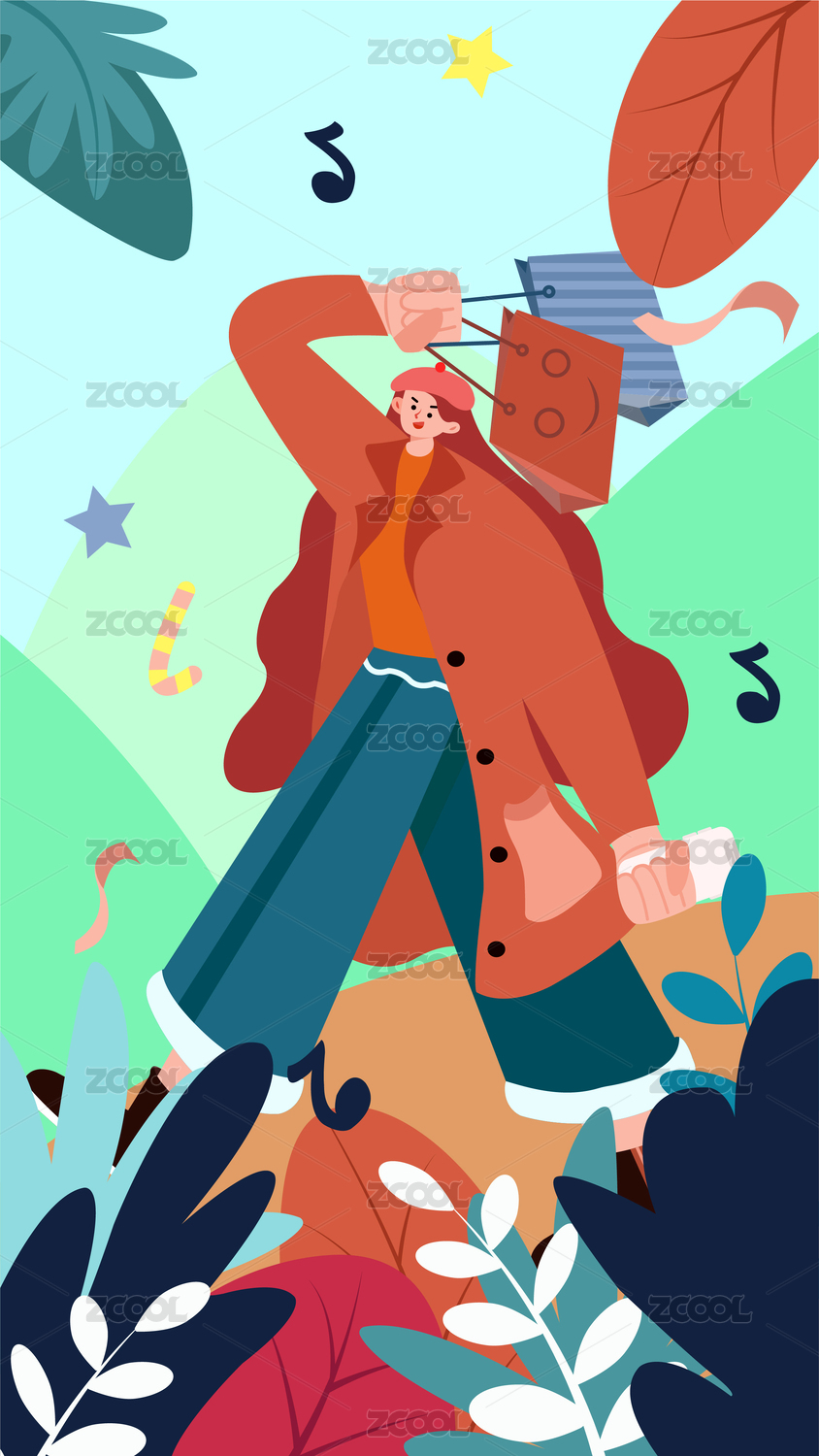 穿橙色蓝色拼接裙子的小姐姐沉浸式舞动