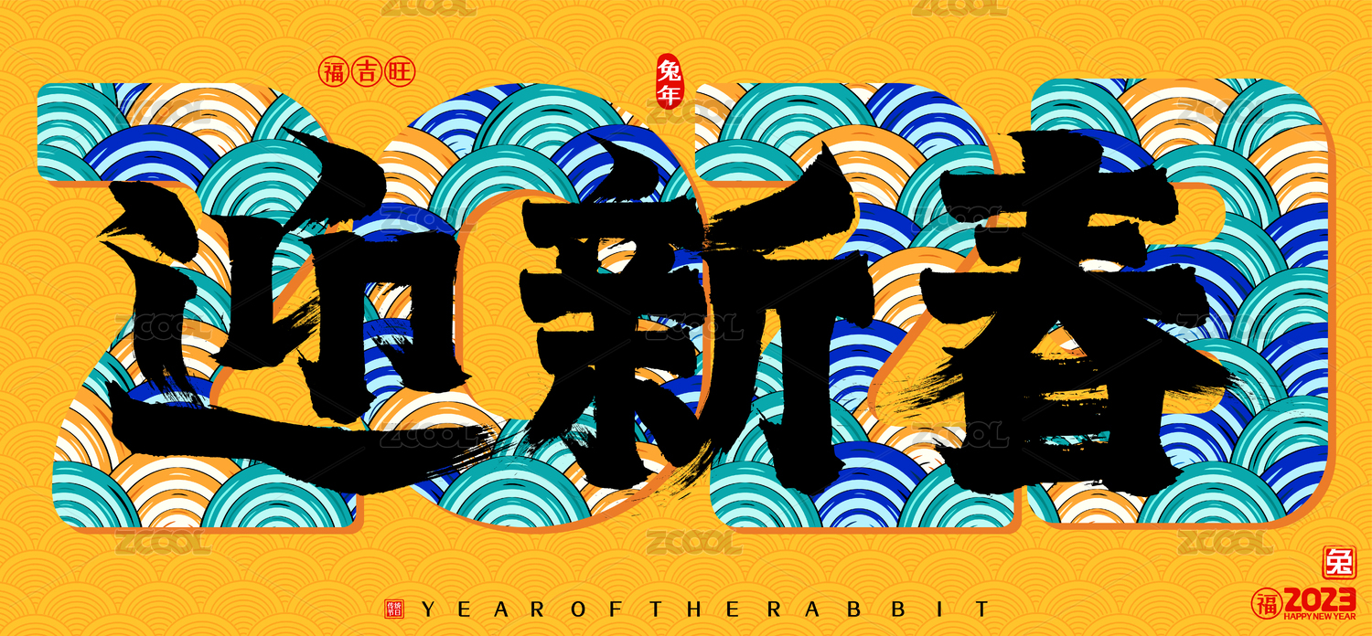 国潮兔年迎新春2023云纹矢量书法字