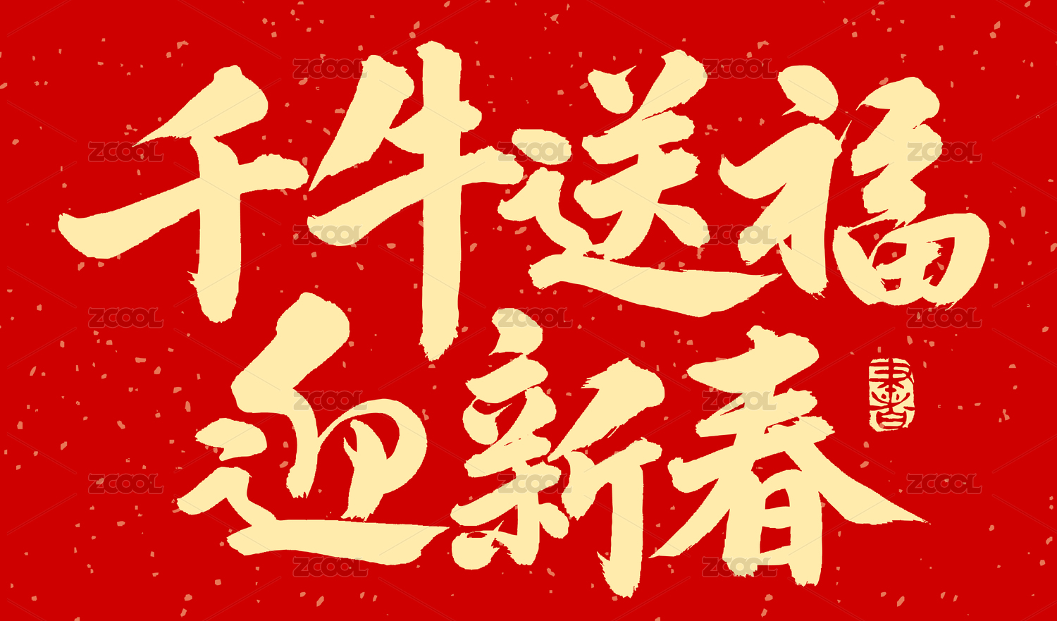 千牛送福迎新春 春节 手写汉字书法