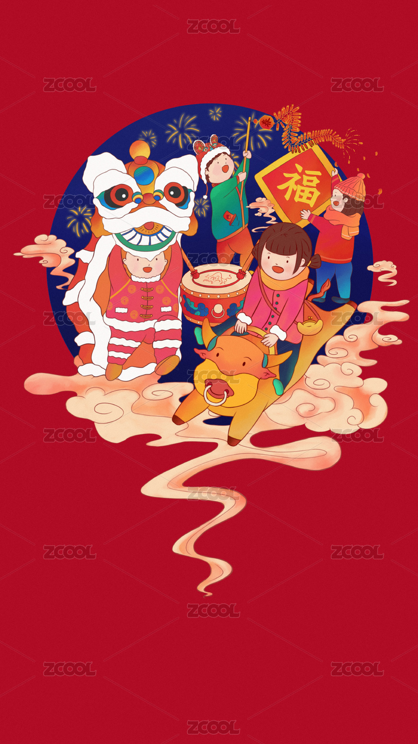 迎春接福舞狮贺牛年