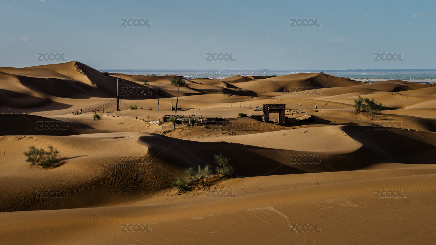 宁夏沙坡头国家级自然保护区沙漠区晴天风光