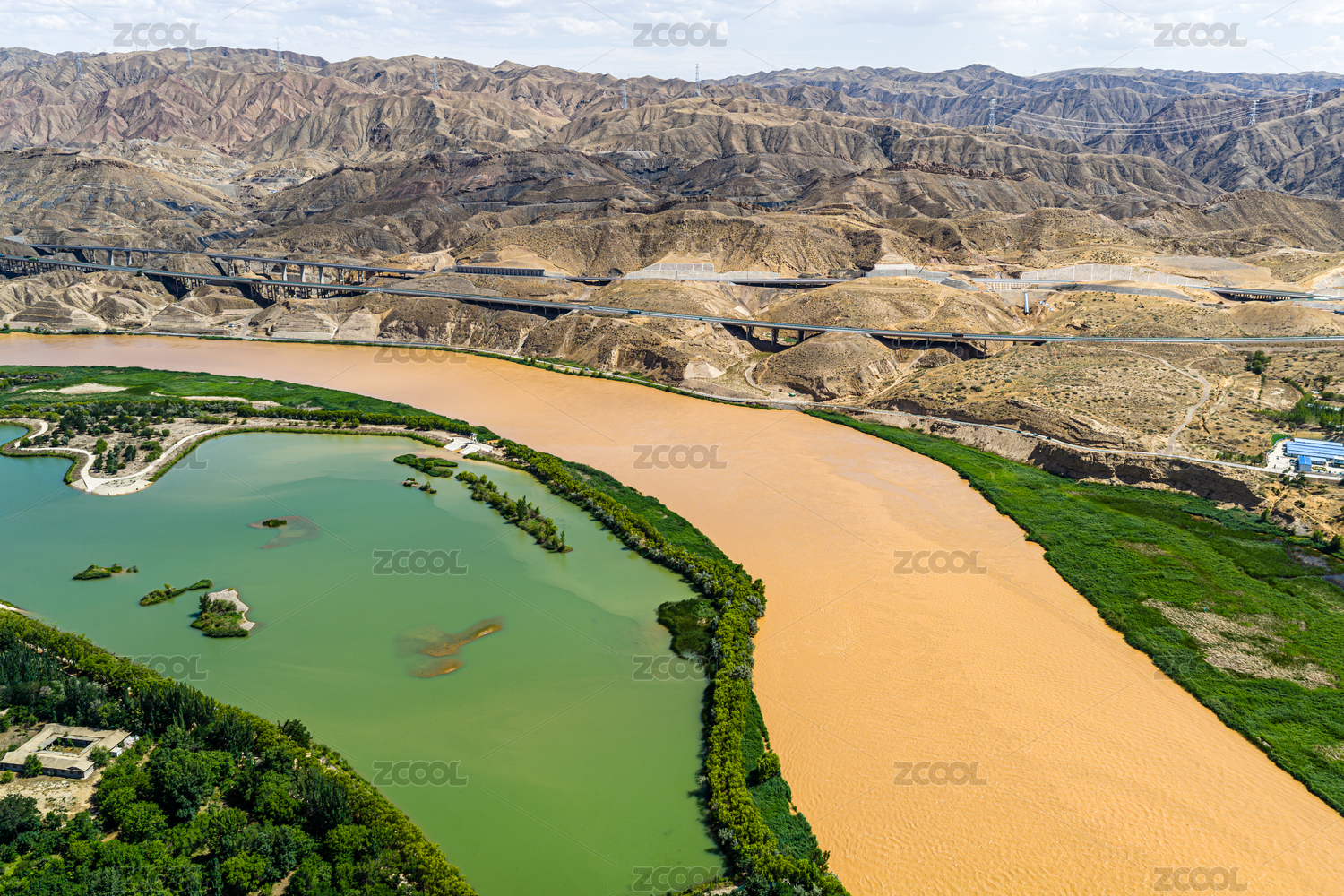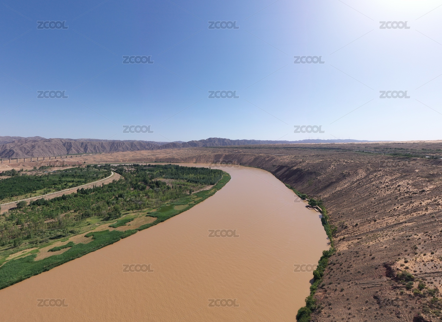 宁夏沙坡头国家级自然保护区黄河区高角度俯瞰黄河湾