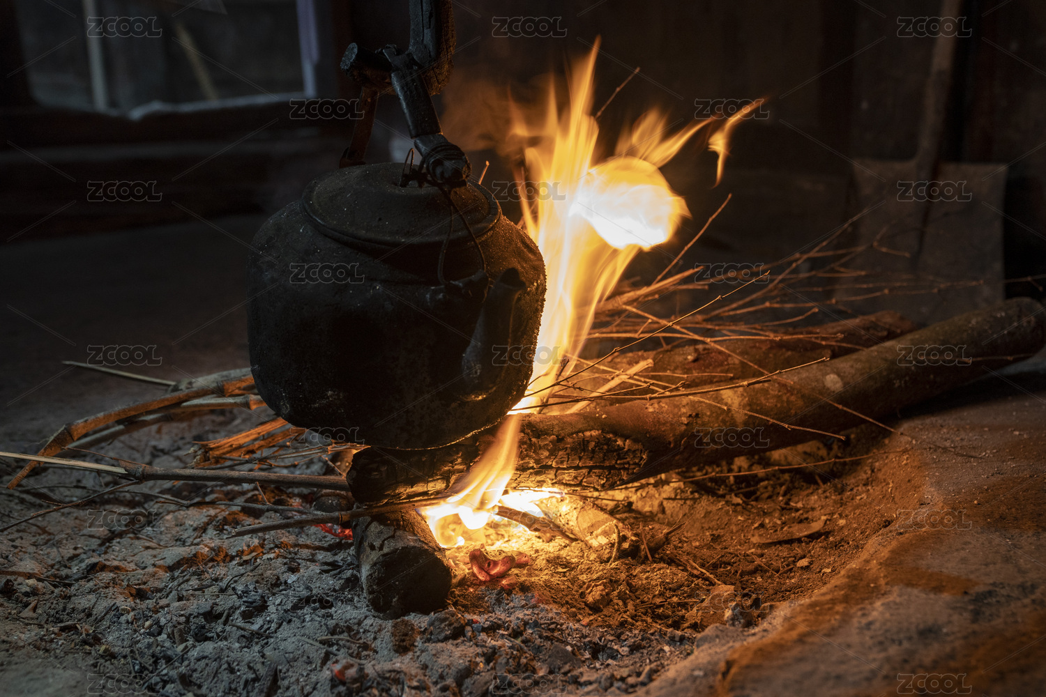 农村地炉子上燃烧的火苗