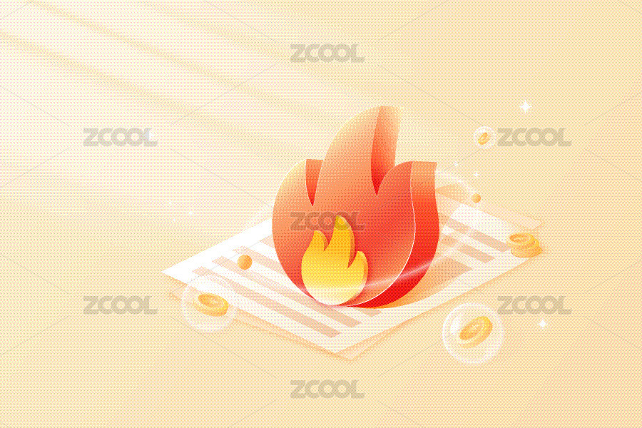 3D热门理财资讯火苗矢量插画